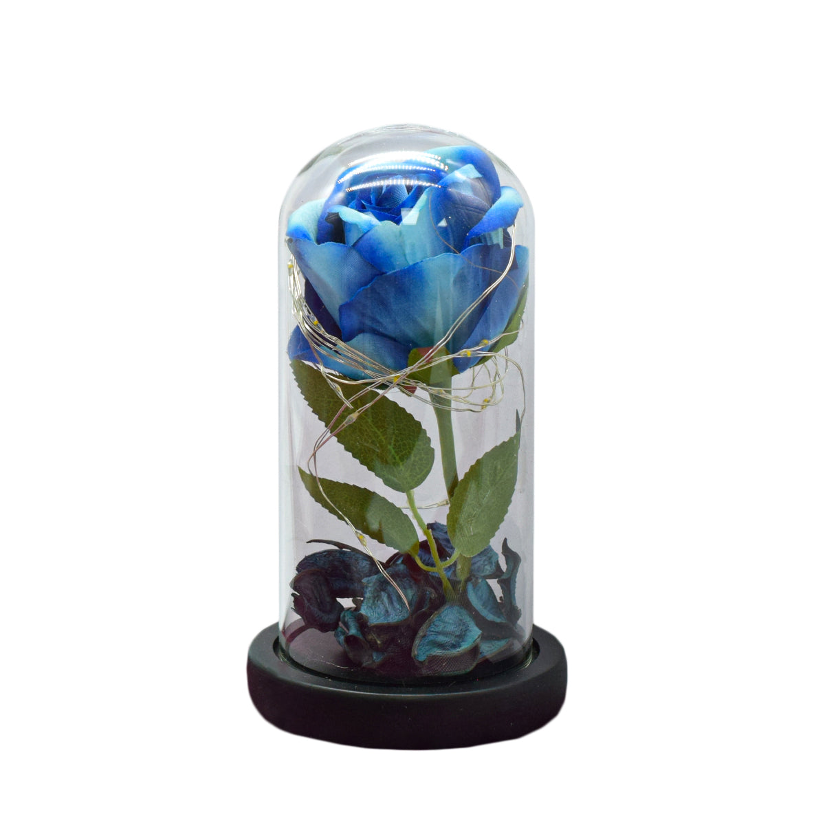 Aranjament floral in cupola de sticla, lumina Led, D4030, Albastru