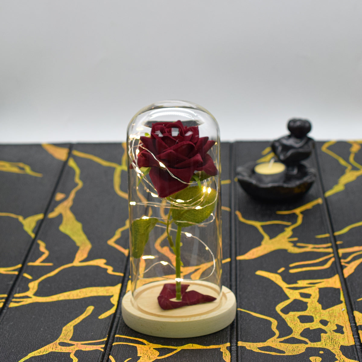 Aranjament floral in cupola de sticla, lumina Led, D4032, Rosu