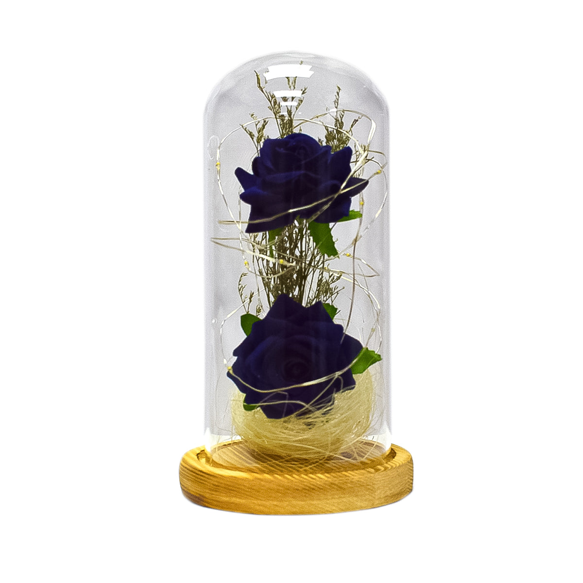 Aranjament floral in cupola de sticla, lumina Led, D4033, Albastru