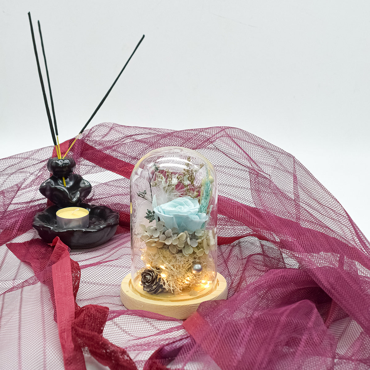 Aranjament floral in cupola de sticla, lumina Led, D4034, Blue