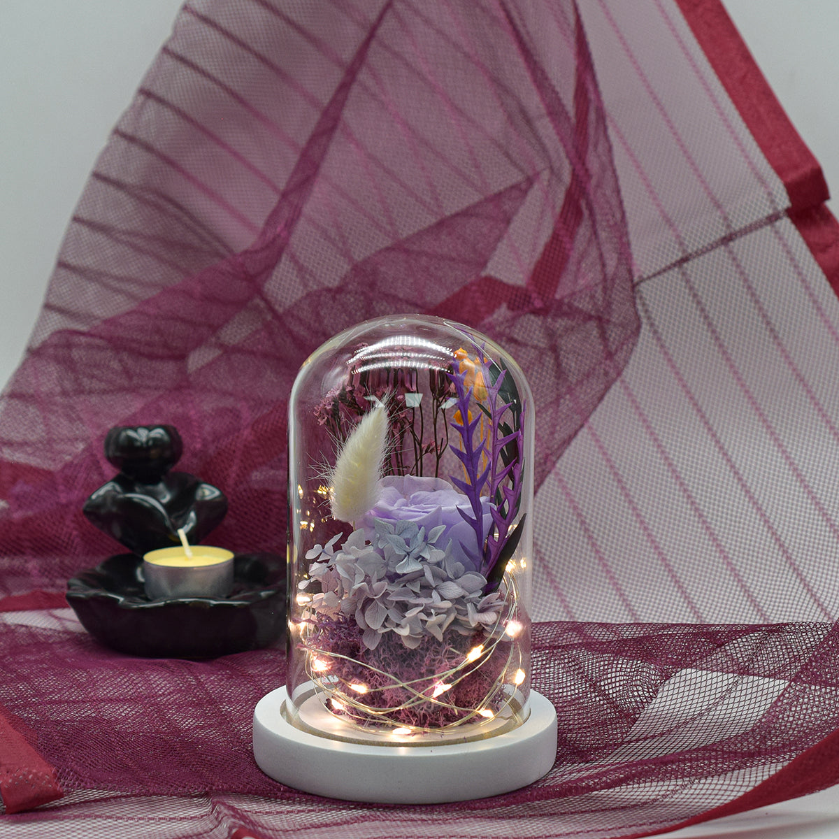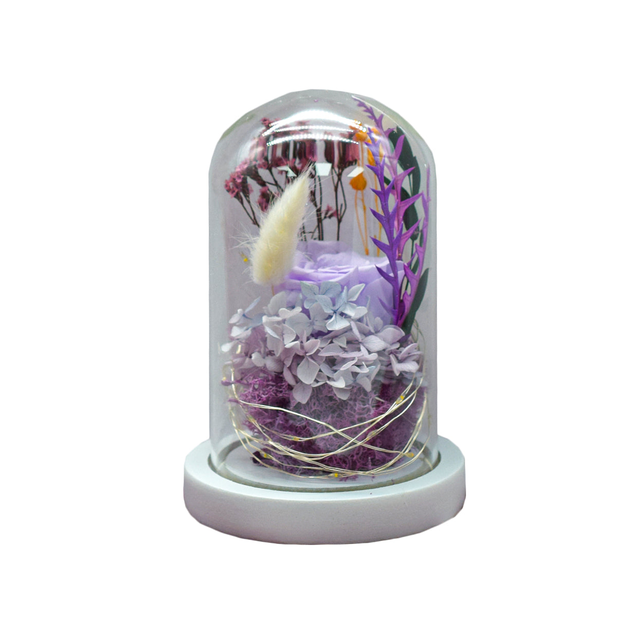 Aranjament floral in cupola de sticla, lumina Led, D4034, Mov