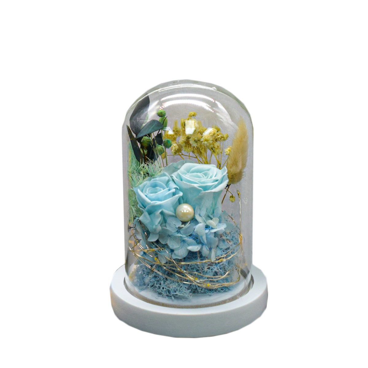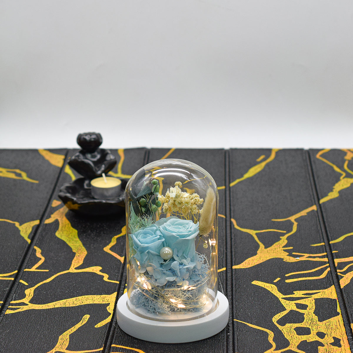 Aranjament floral in cupola de sticla, lumina Led, D4035, AlbastruDeschis