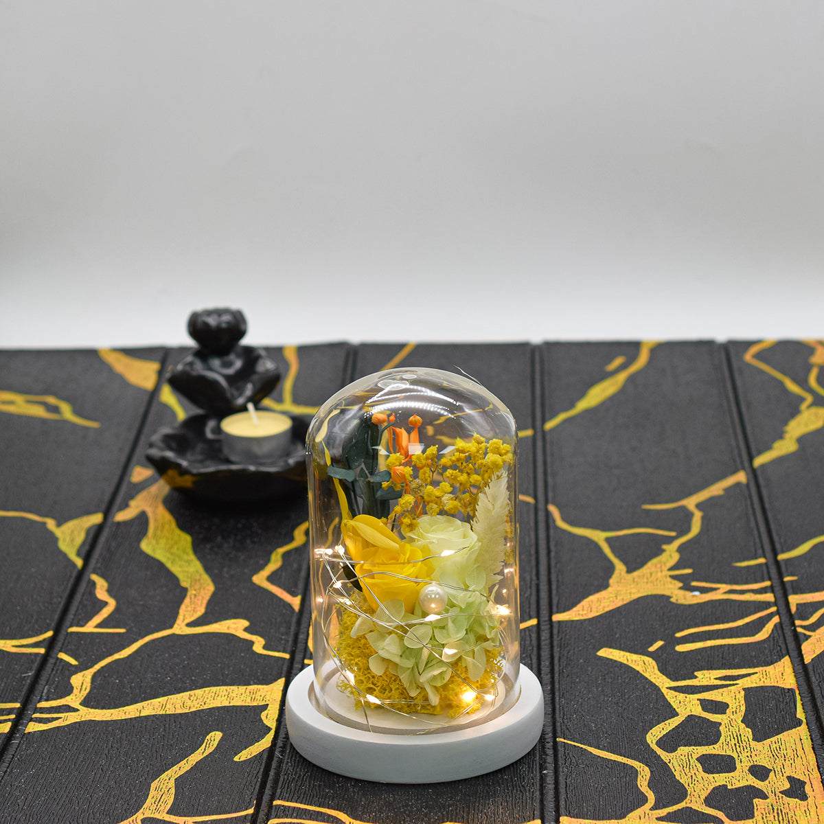 Aranjament floral in cupola de sticla, lumina Led, D4035, Galben