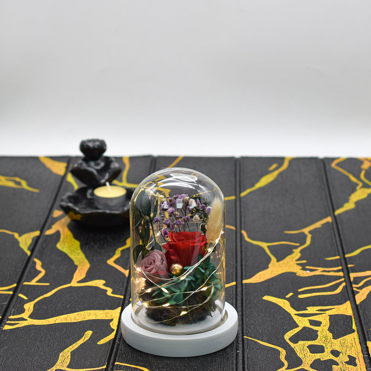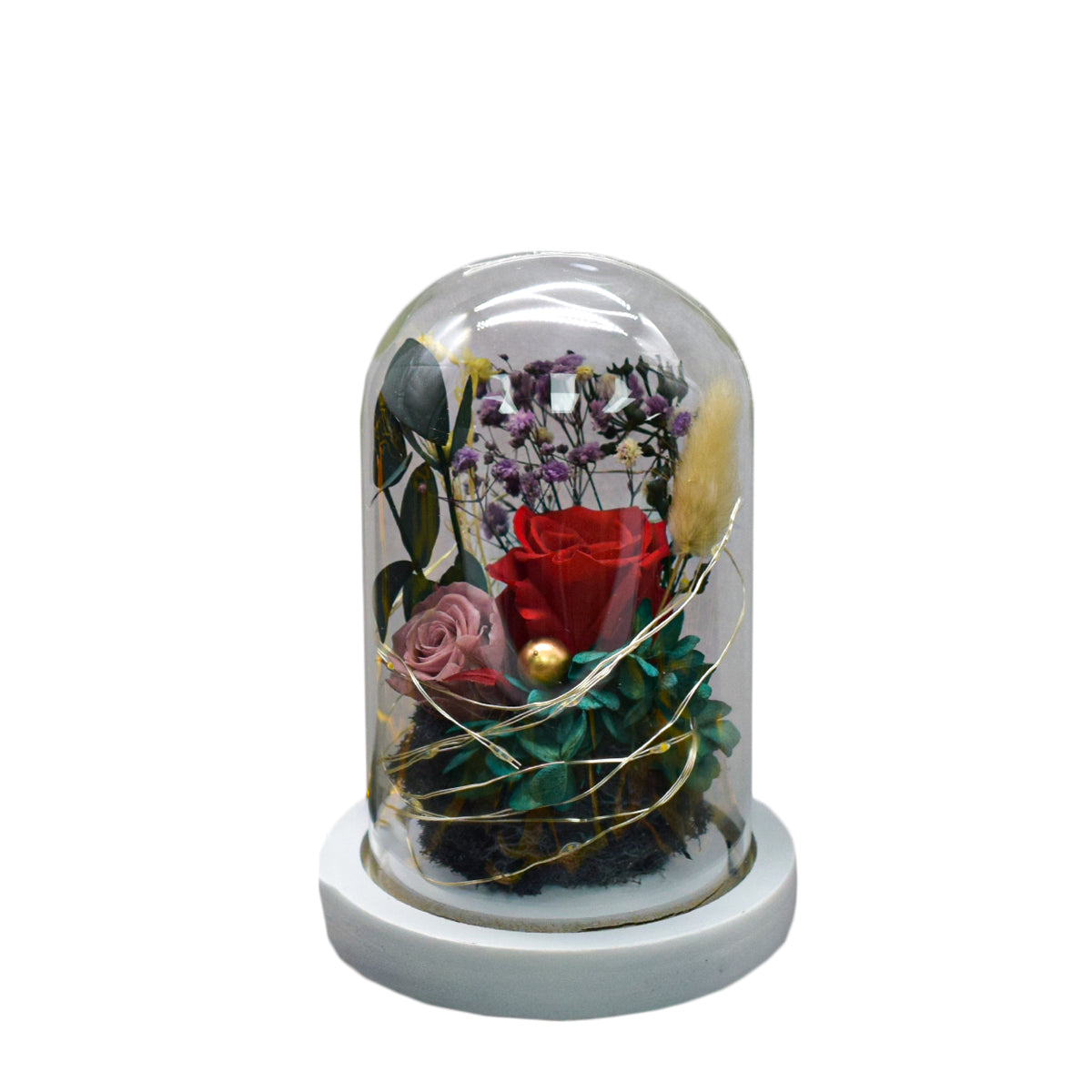 Aranjament floral in cupola de sticla, lumina Led, D4035, Rosu