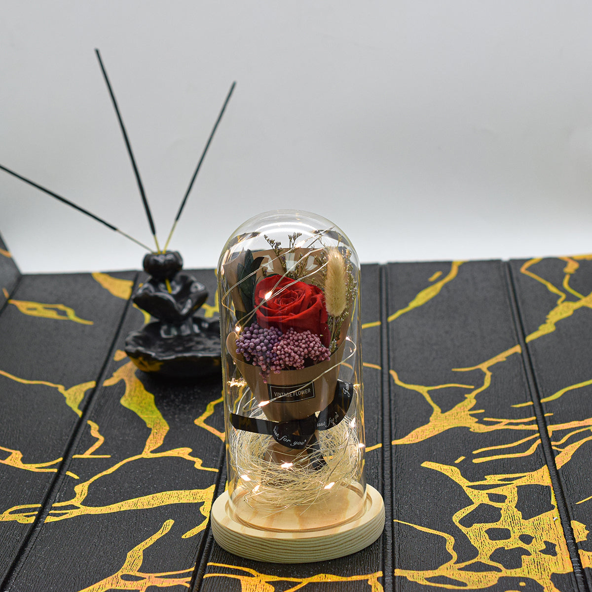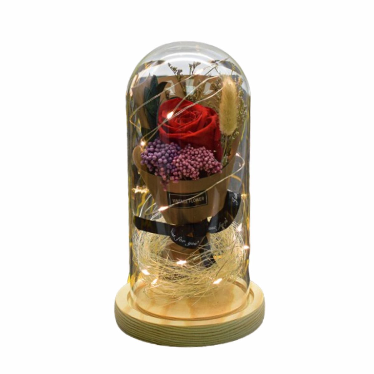 Aranjament floral in cupola de sticla, lumina Led, D4036, Rosu