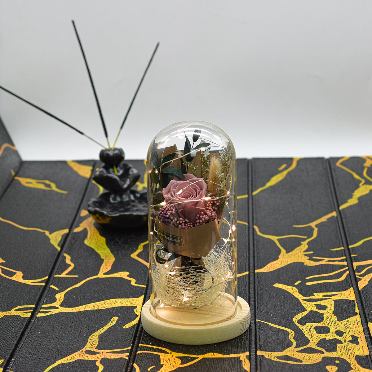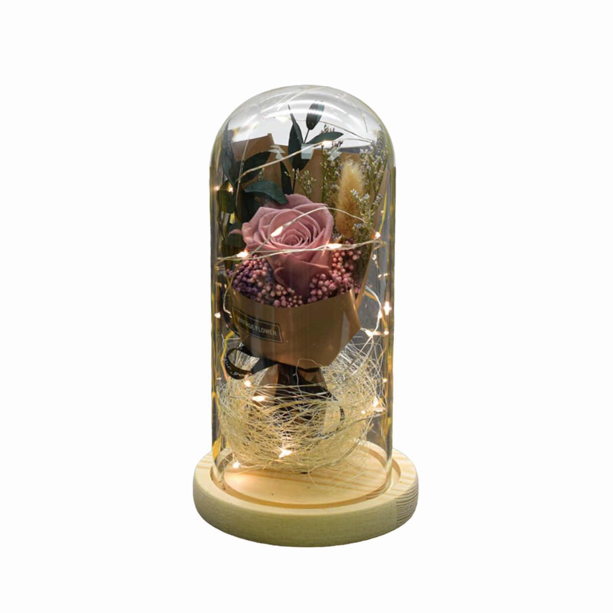 Aranjament floral in cupola de sticla, lumina Led, D4036, Roz pal