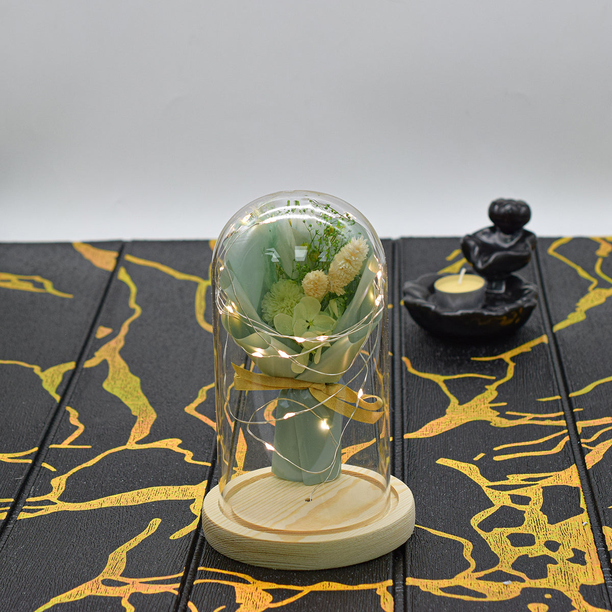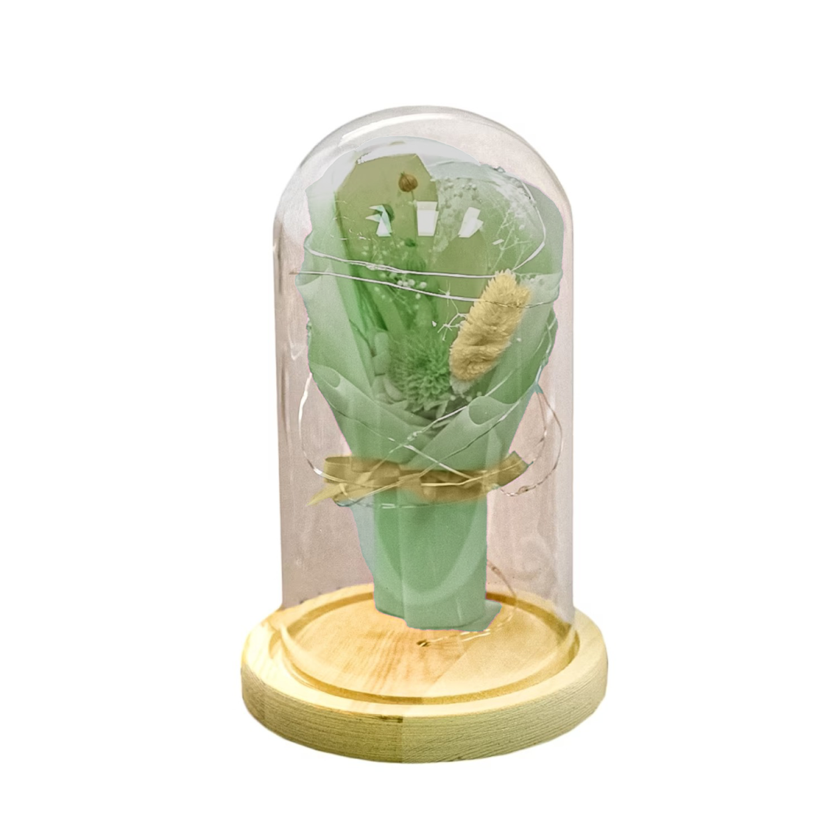 Aranjament floral in cupola de sticla, lumina Led, D4037, Verde