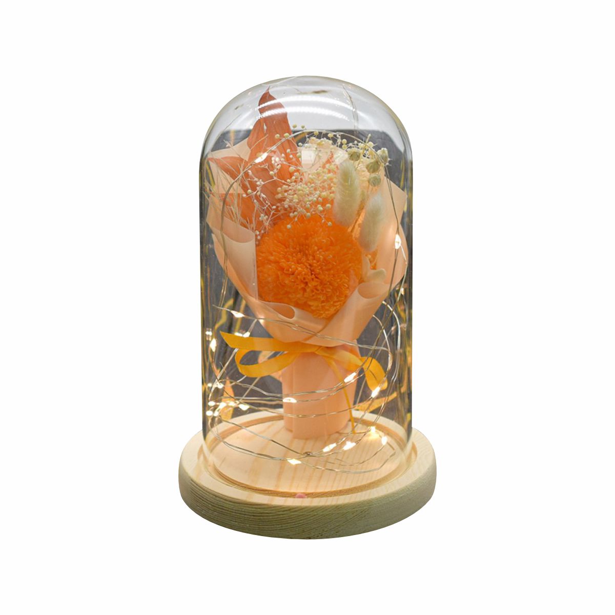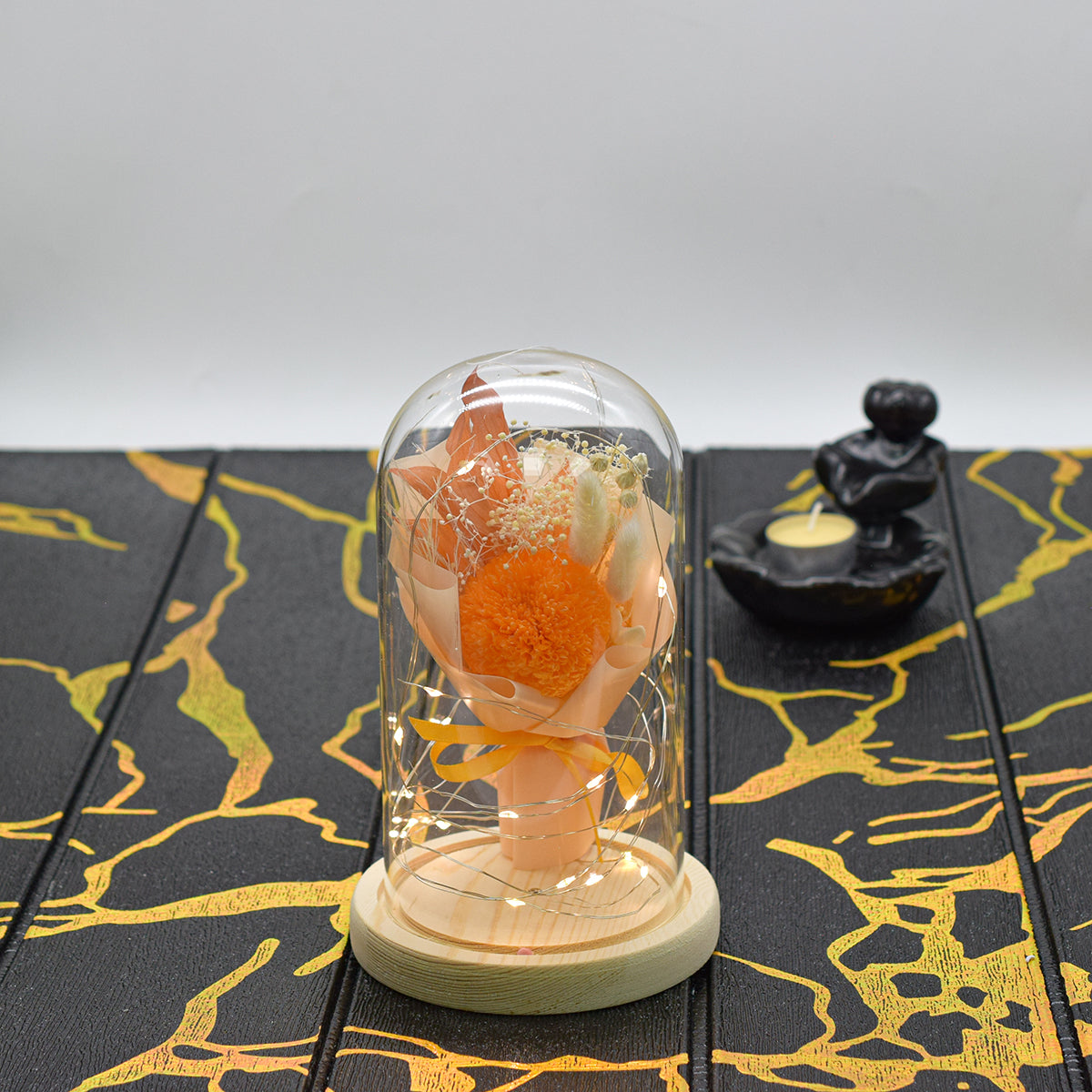 Aranjament floral in cupola de sticla, lumina Led, D4038, Portocaliu