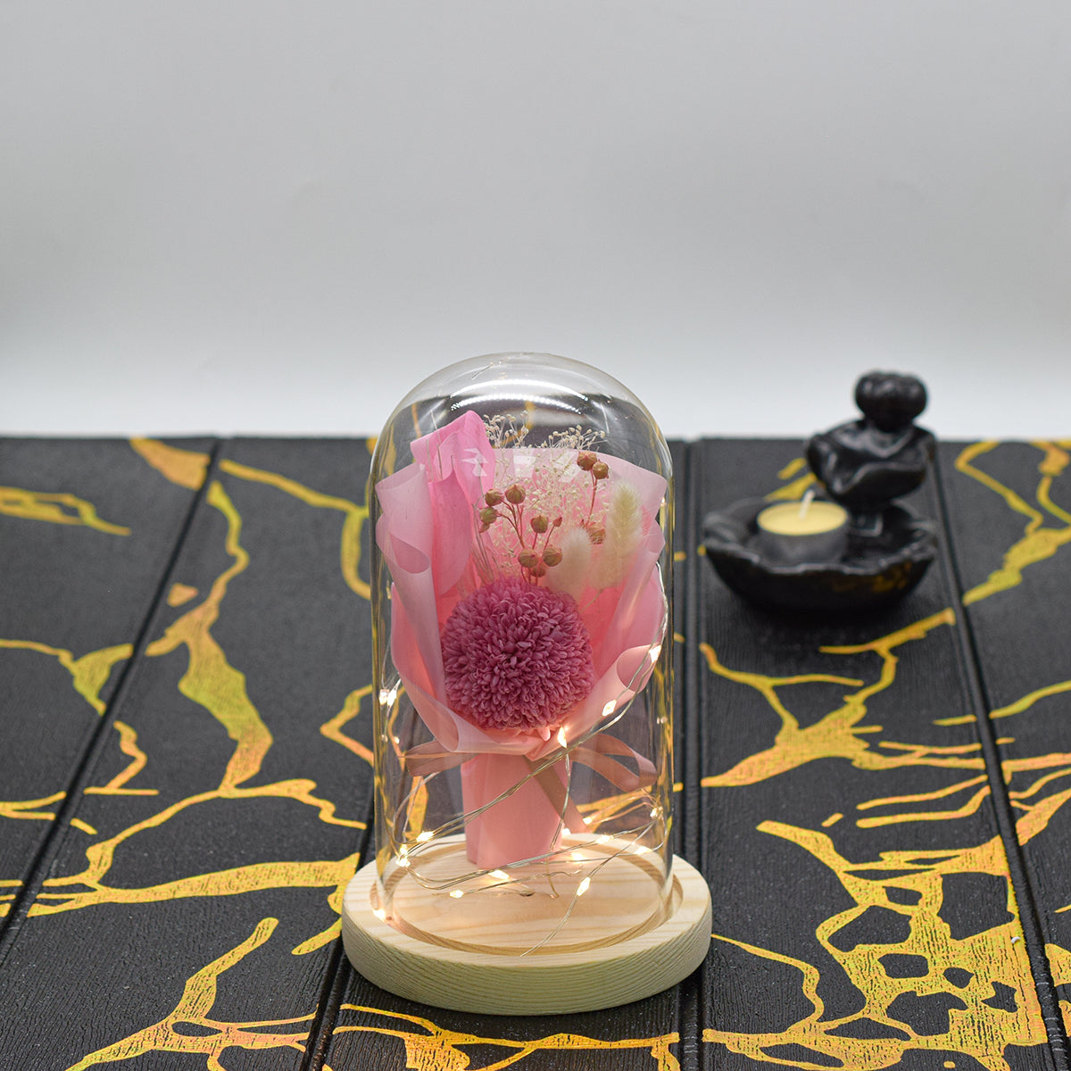 Aranjament floral in cupola de sticla, lumina Led, D4038, Roz