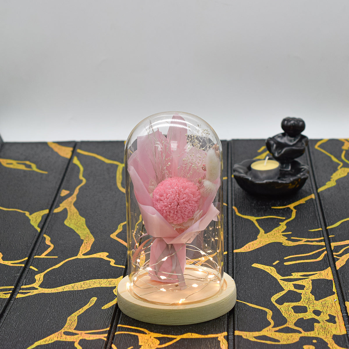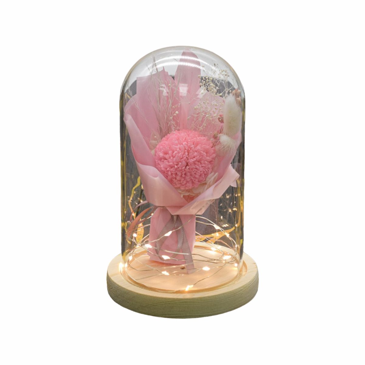 Aranjament floral in cupola de sticla, lumina Led, D4038, Roz pal
