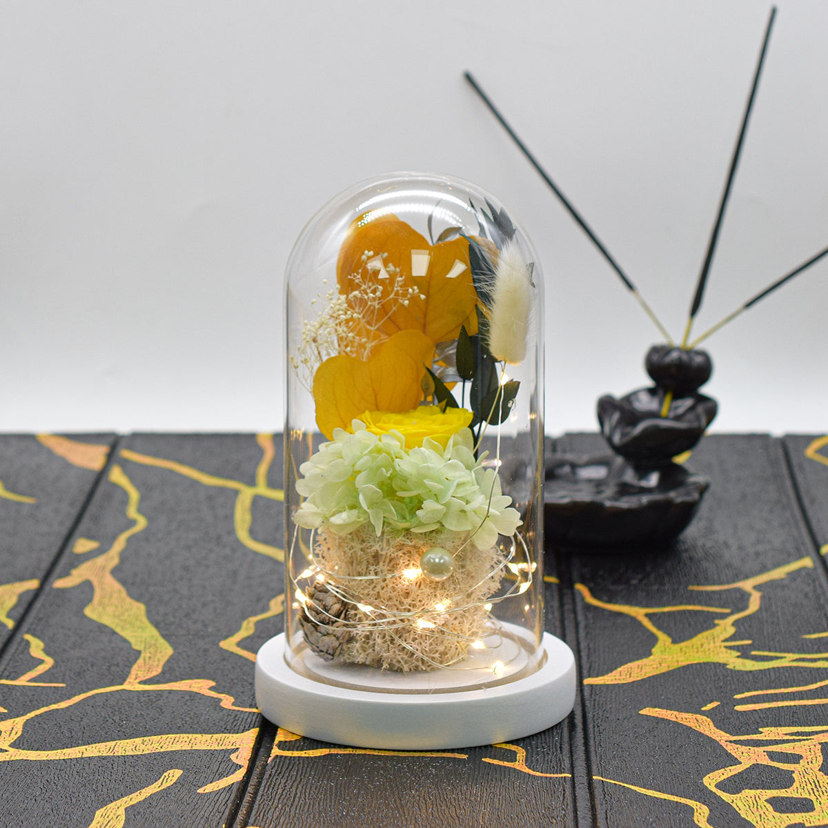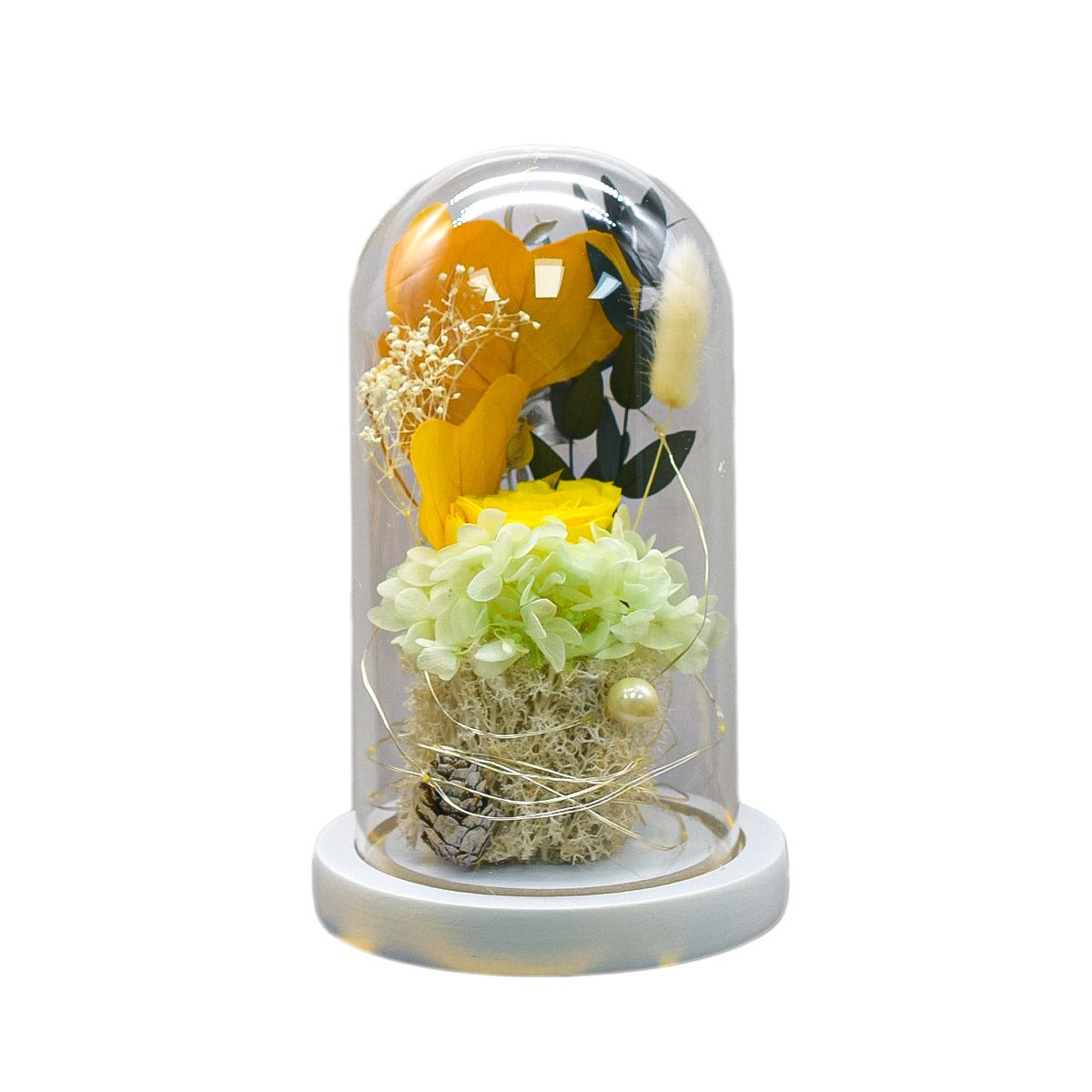 Aranjament floral in cupola de sticla, lumina Led, D4039, Portocaliu