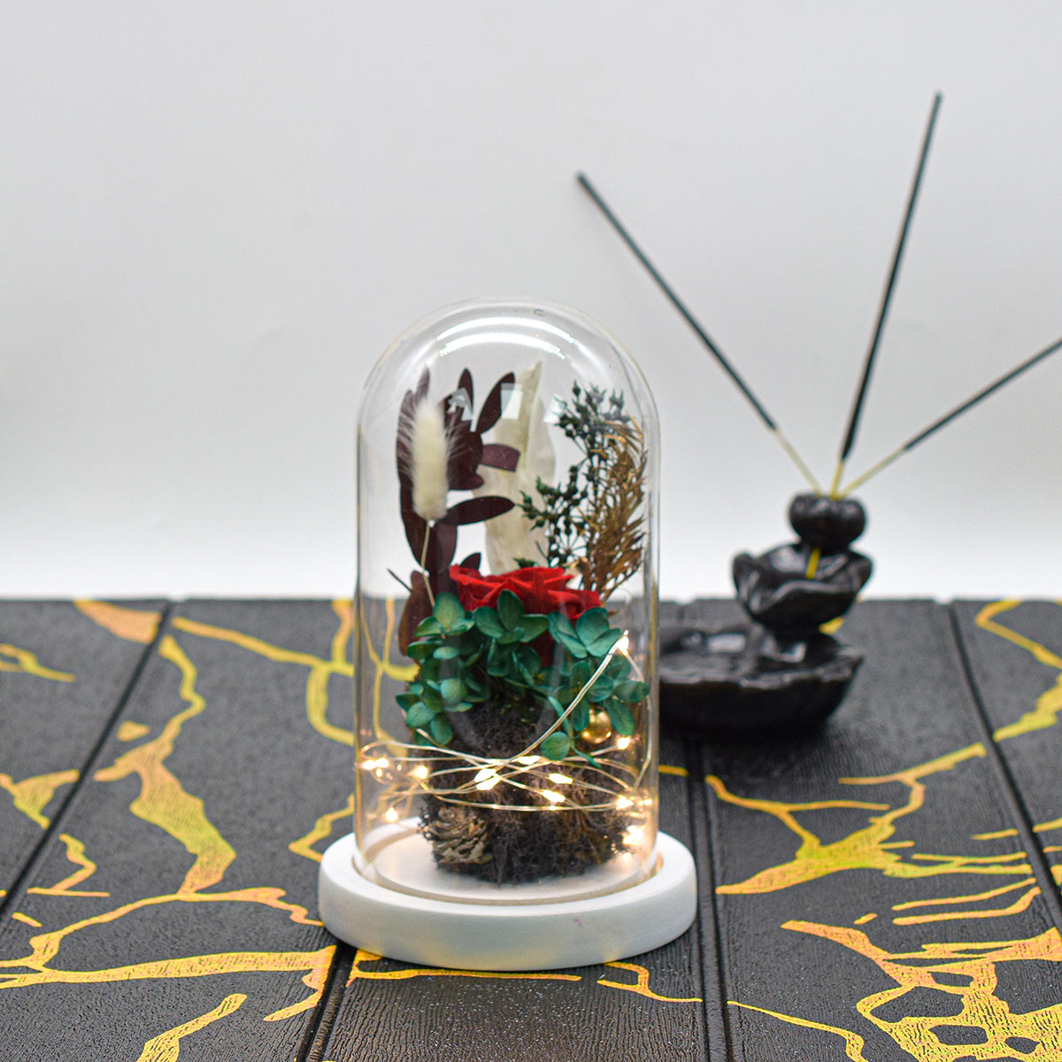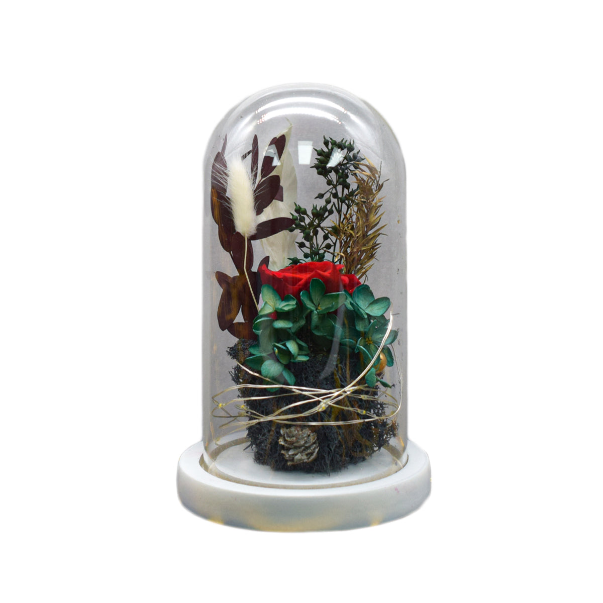 Aranjament floral in cupola de sticla, lumina Led, D4039, Rosu