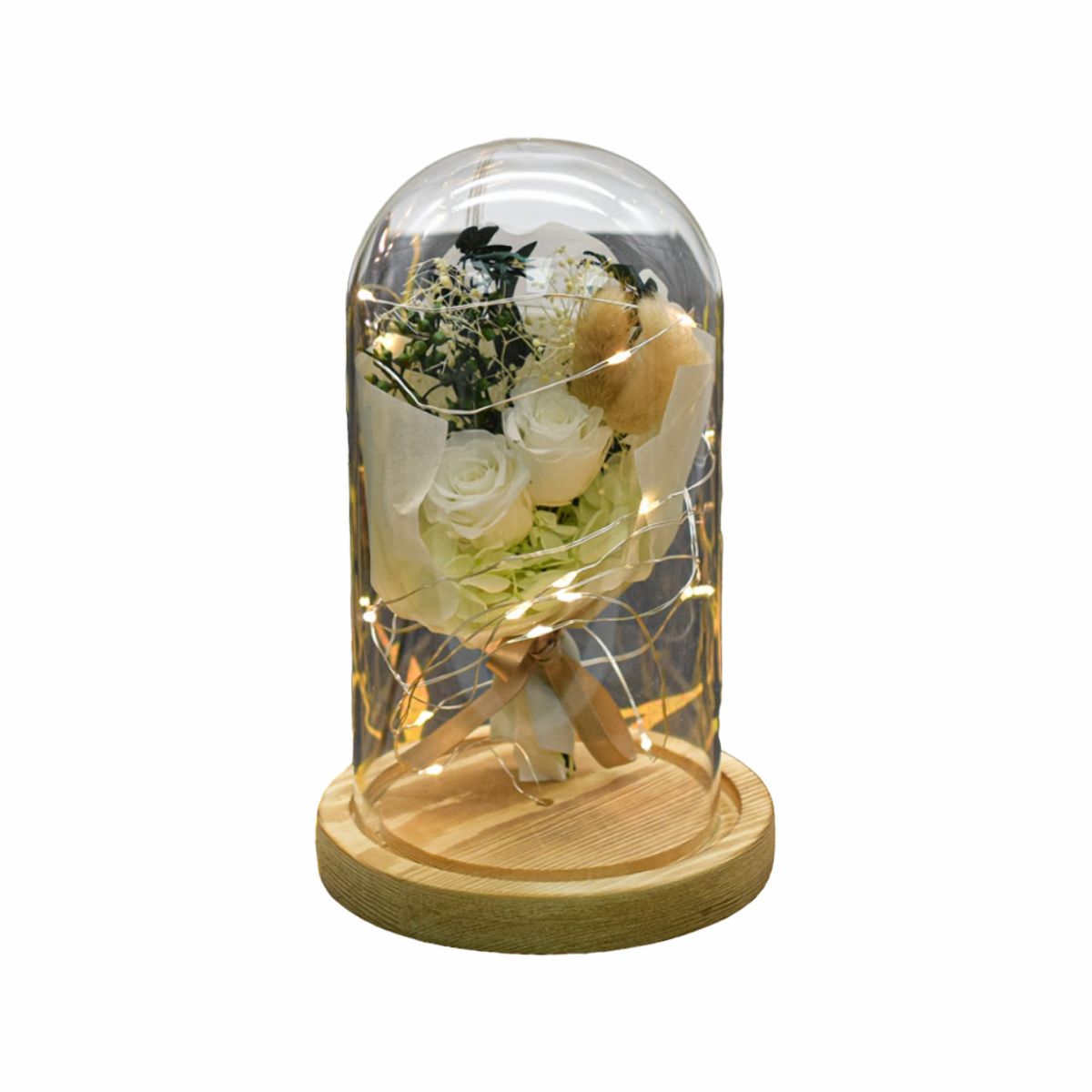 Aranjament floral in cupola de sticla, lumina Led, D4040, Alb