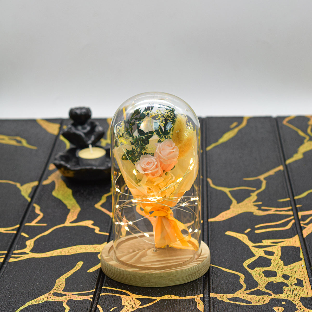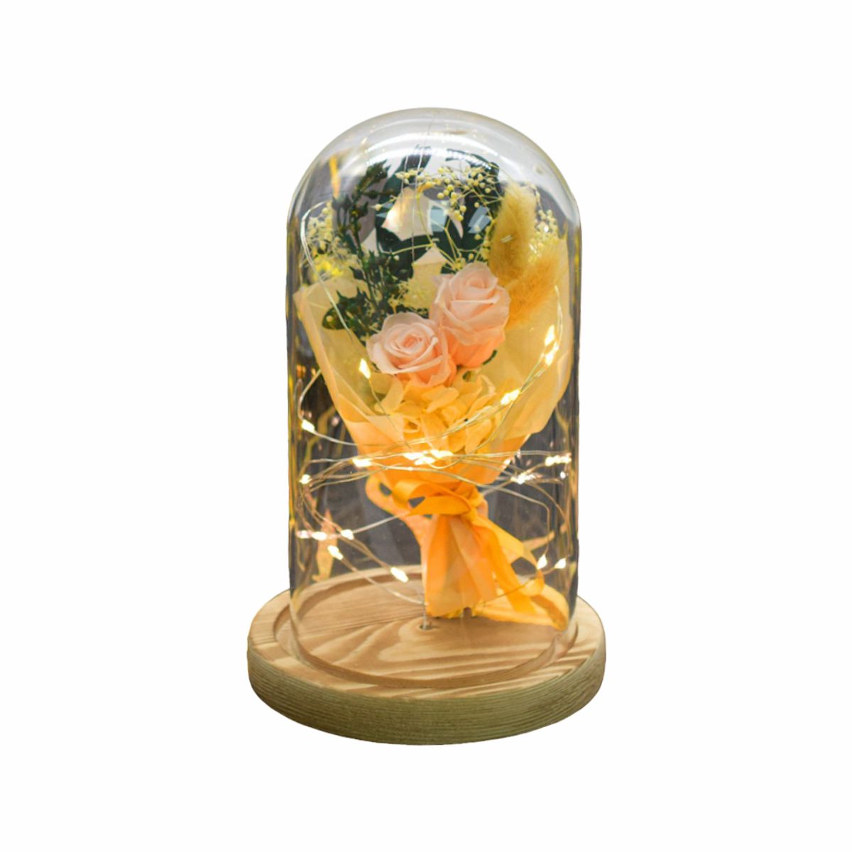 Aranjament floral in cupola de sticla, lumina Led, D4040, Portocaliu