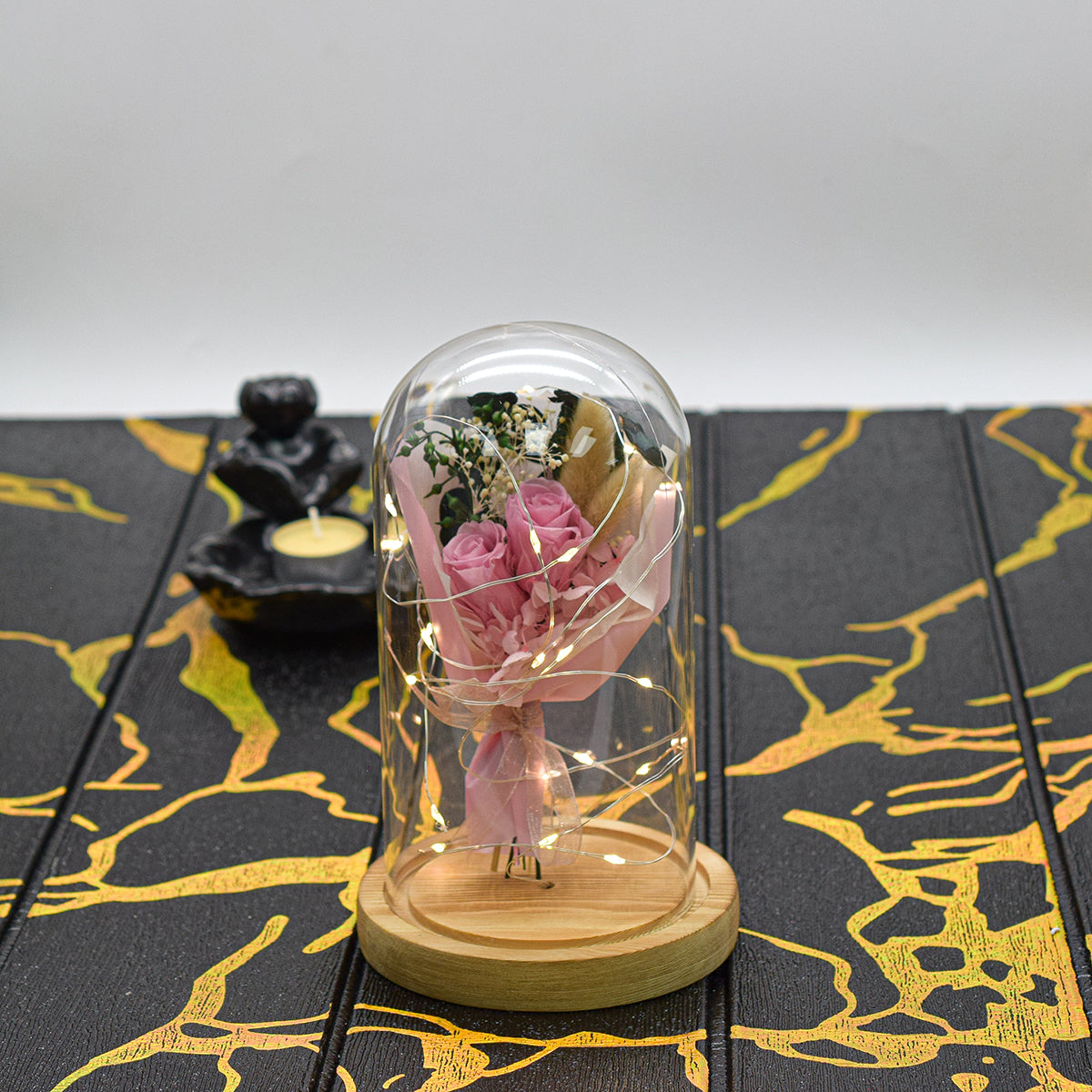 Aranjament floral in cupola de sticla, lumina Led, D4040, Roz