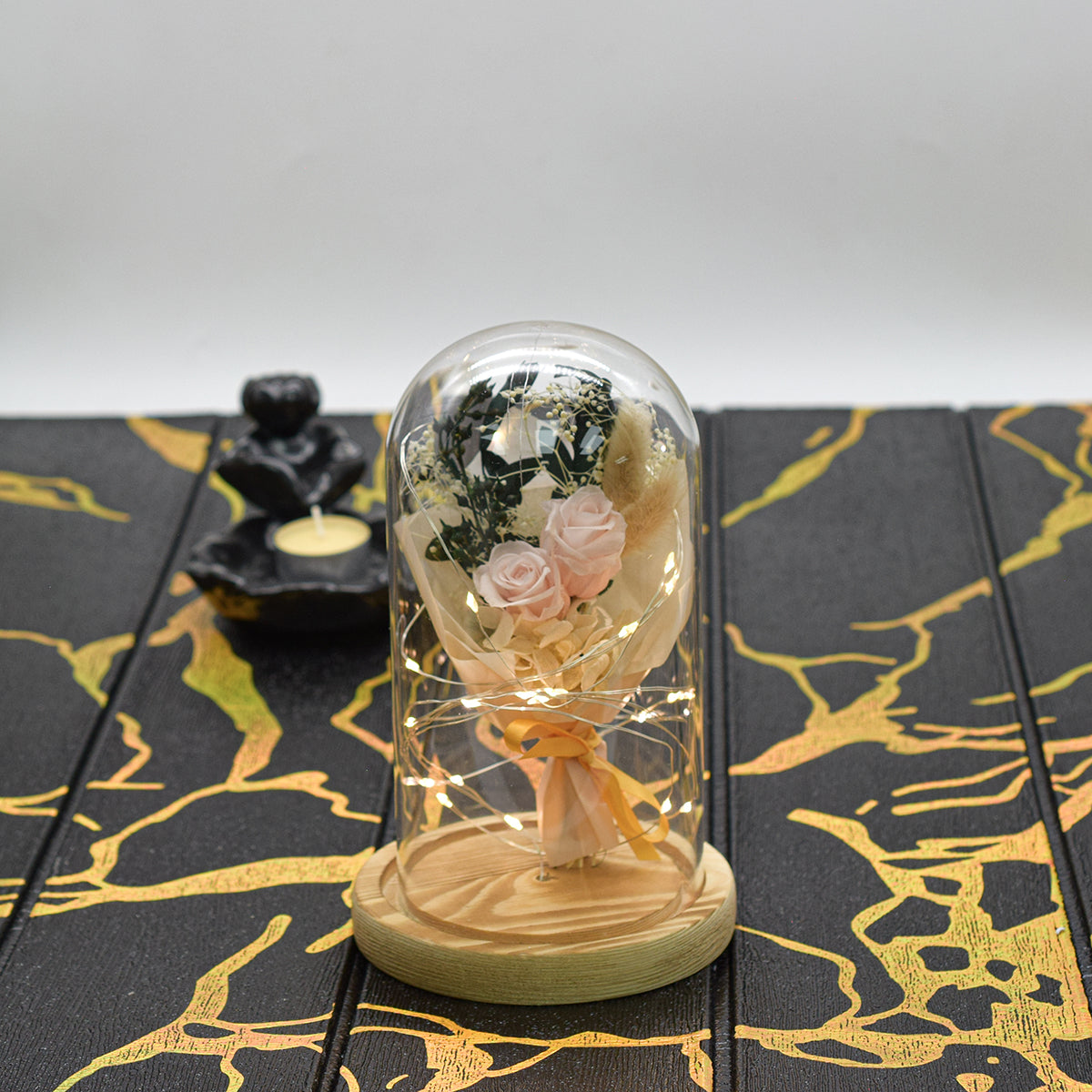 Aranjament floral in cupola de sticla, lumina Led, D4040, Roz pal