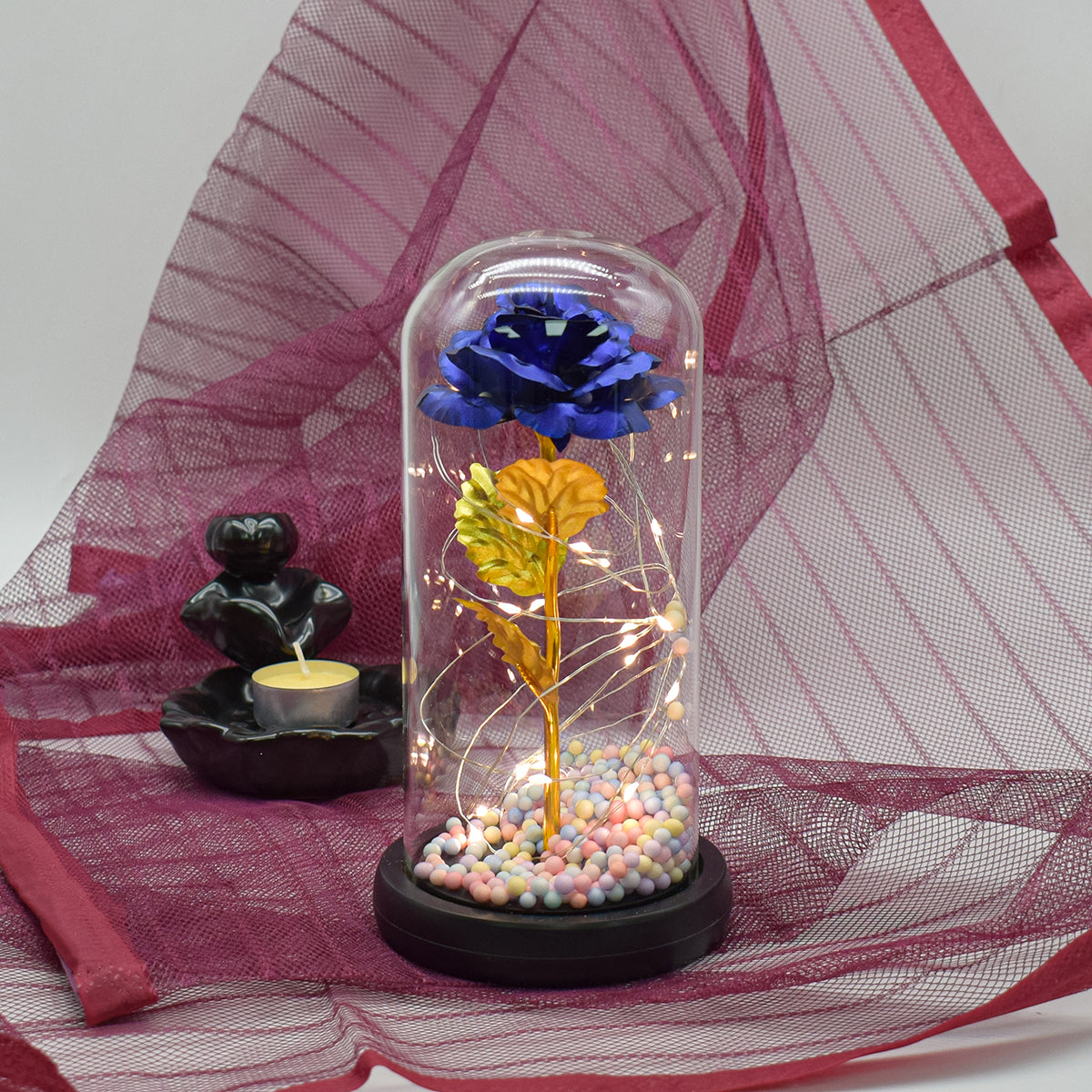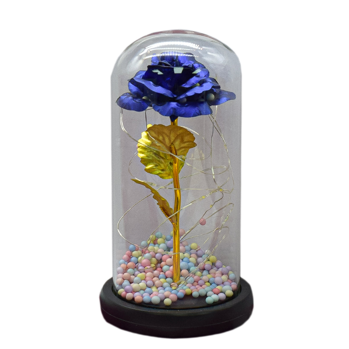 Aranjament floral in cupola de sticla, lumina Led, D4041, Albastru