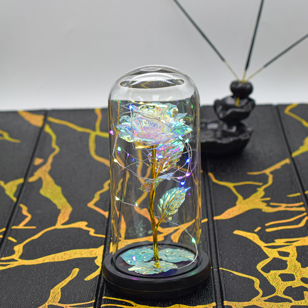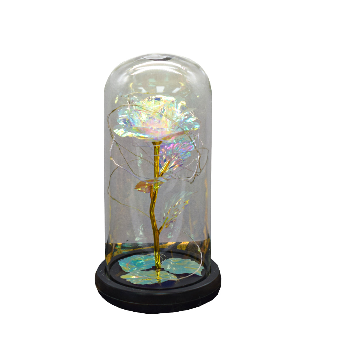 Aranjament floral in cupola de sticla, lumina Led, D4042, Alb