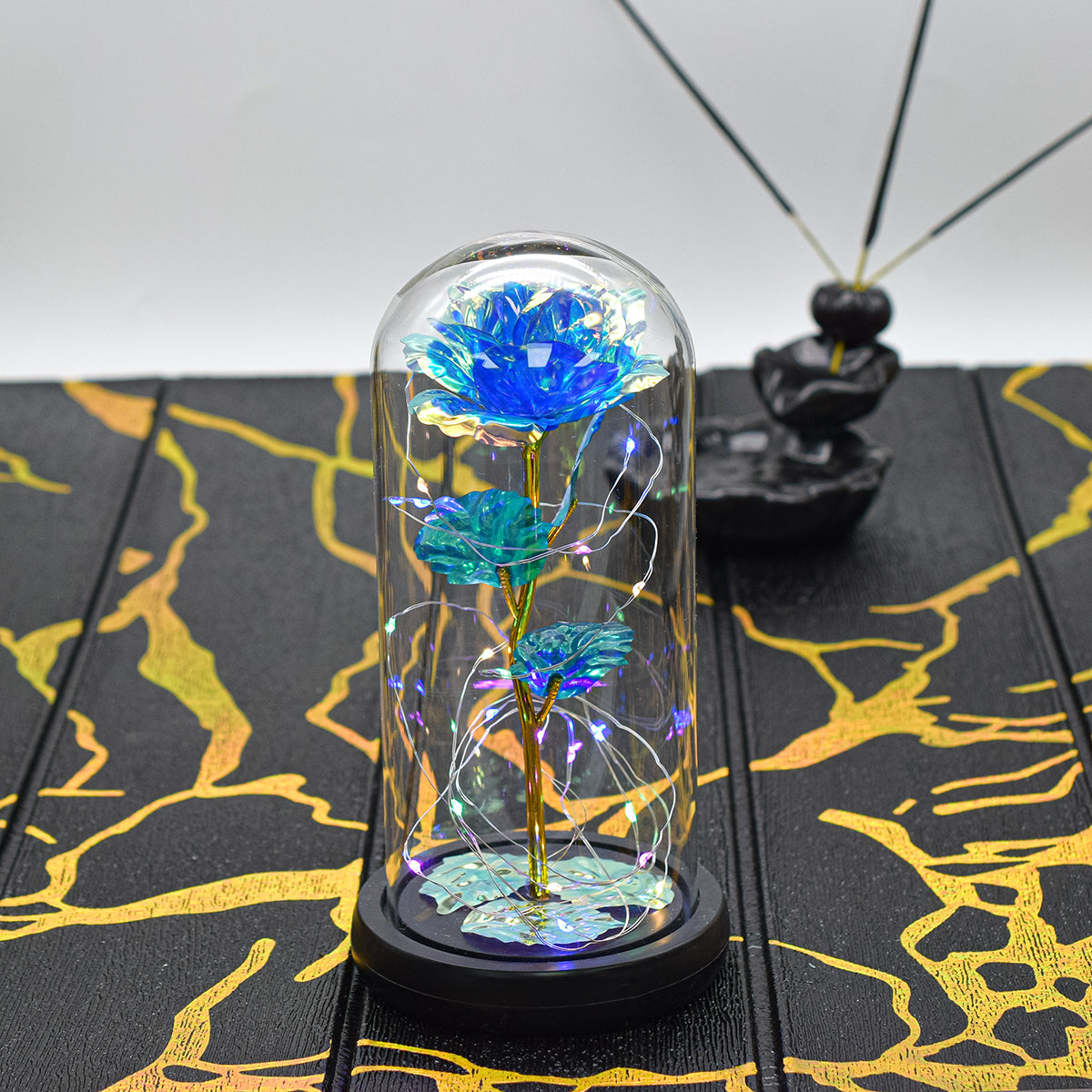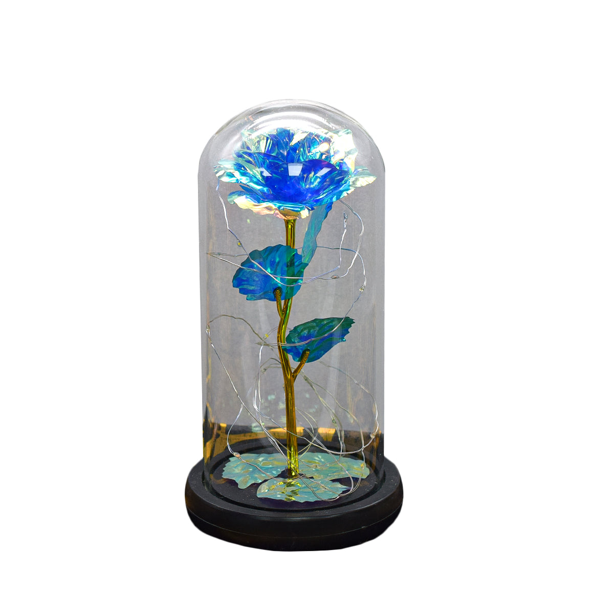 Aranjament floral in cupola de sticla, lumina Led, D4042, Albastru