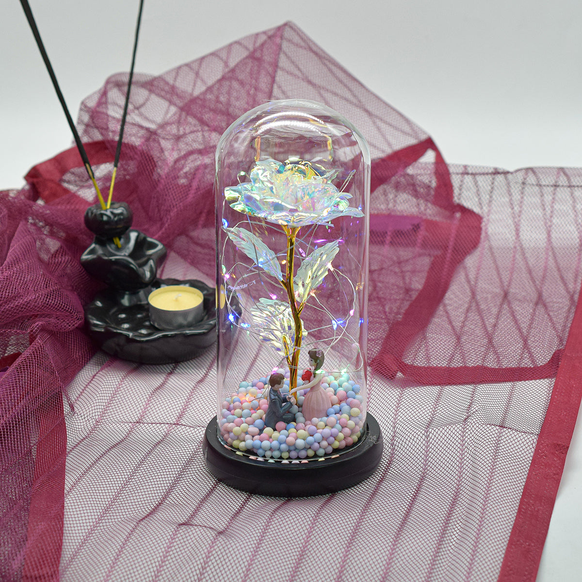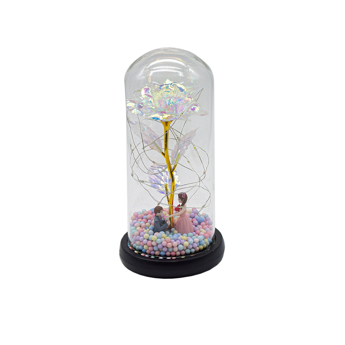Aranjament floral in cupola de sticla, lumina Led, D4043, Albastru