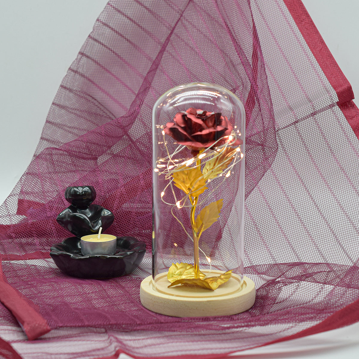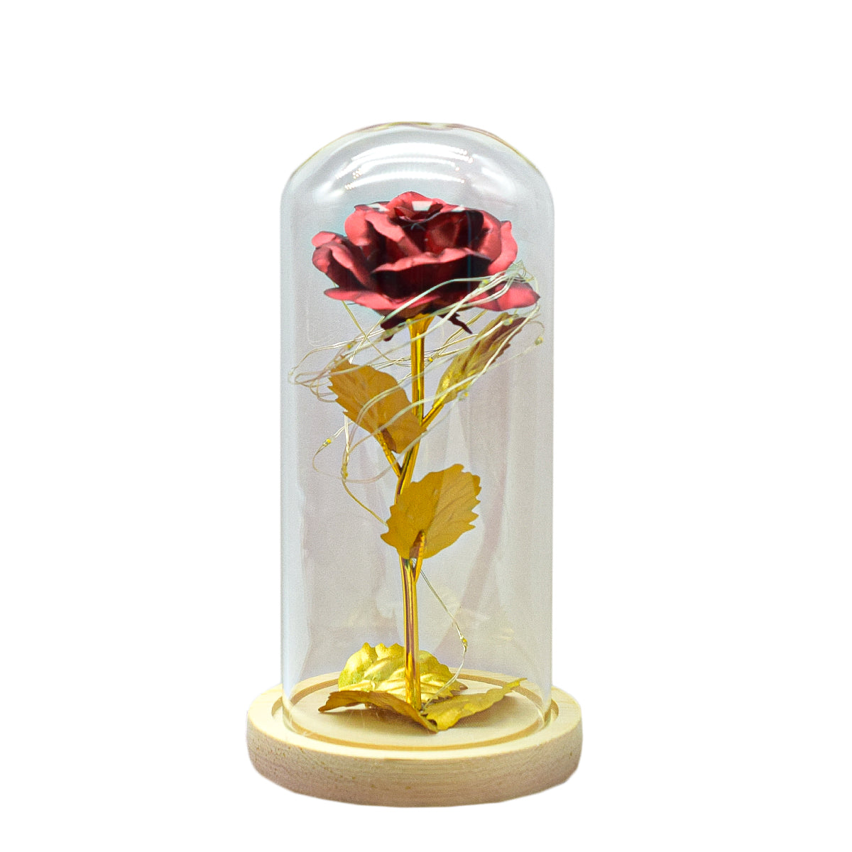 Aranjament floral in cupola de sticla, lumina Led, D4044, Rosu