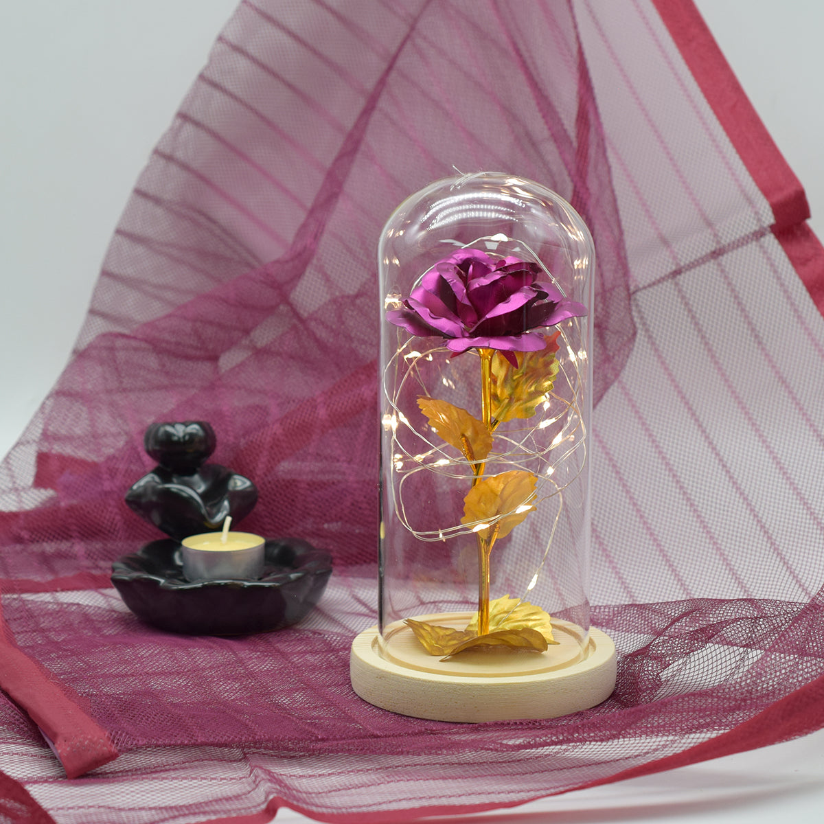 Aranjament floral in cupola de sticla, lumina Led, D4044, Roz