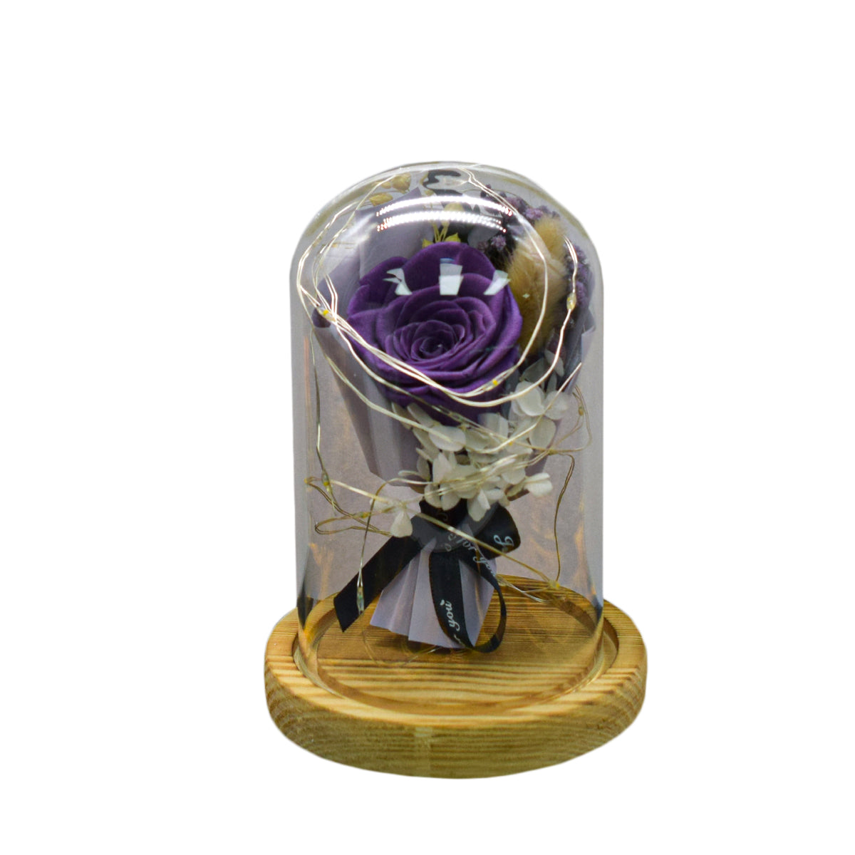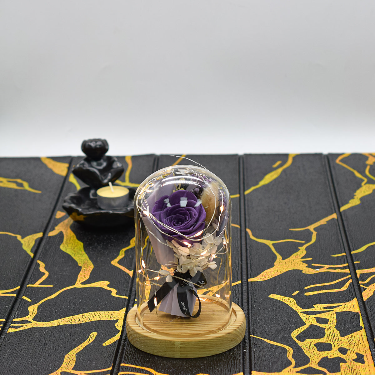 Aranjament floral in cupola de sticla, lumina Led, D4046, Mov inchis