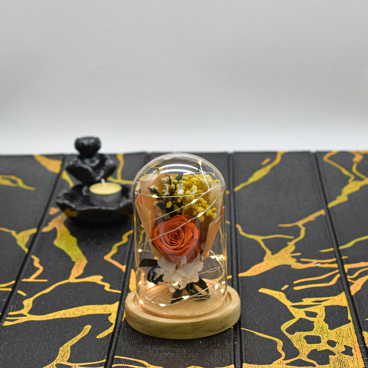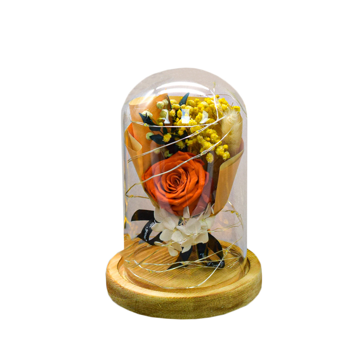 Aranjament floral in cupola de sticla, lumina Led, D4046, Portocaliu