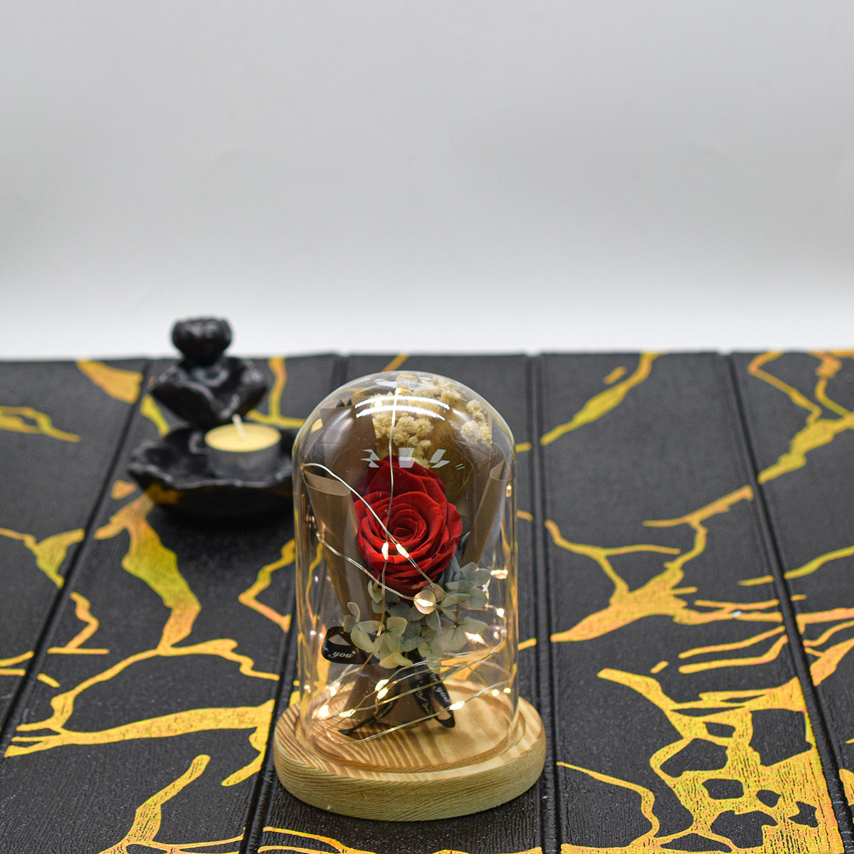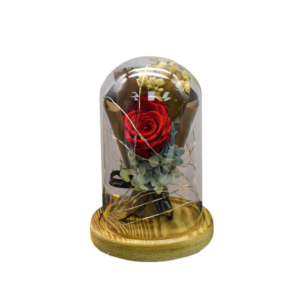 Aranjament floral in cupola de sticla, lumina Led, D4046, Rosu