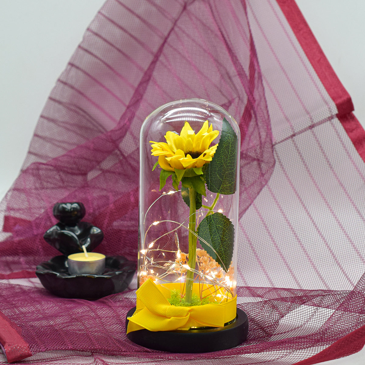 Aranjament floral in cupola de sticla, lumina Led, D4047, Galben