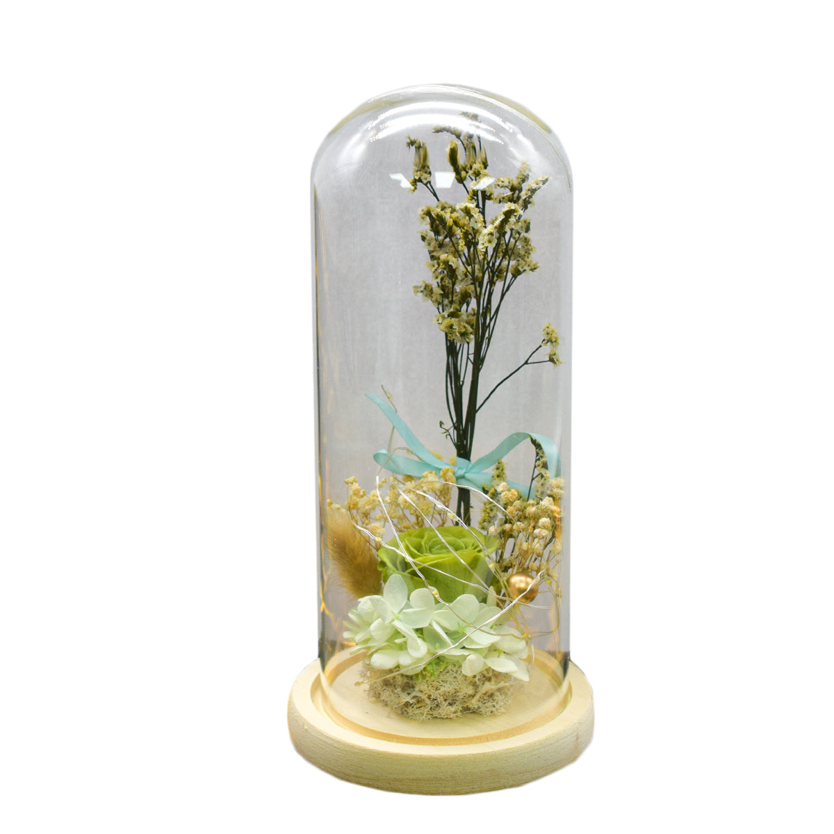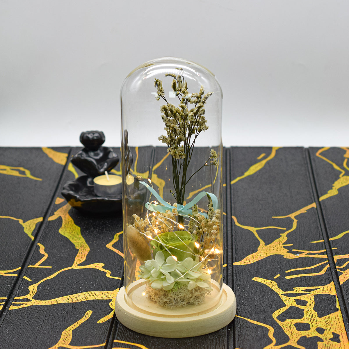 Aranjament floral in cupola de sticla, lumina Led, D4048, Verde