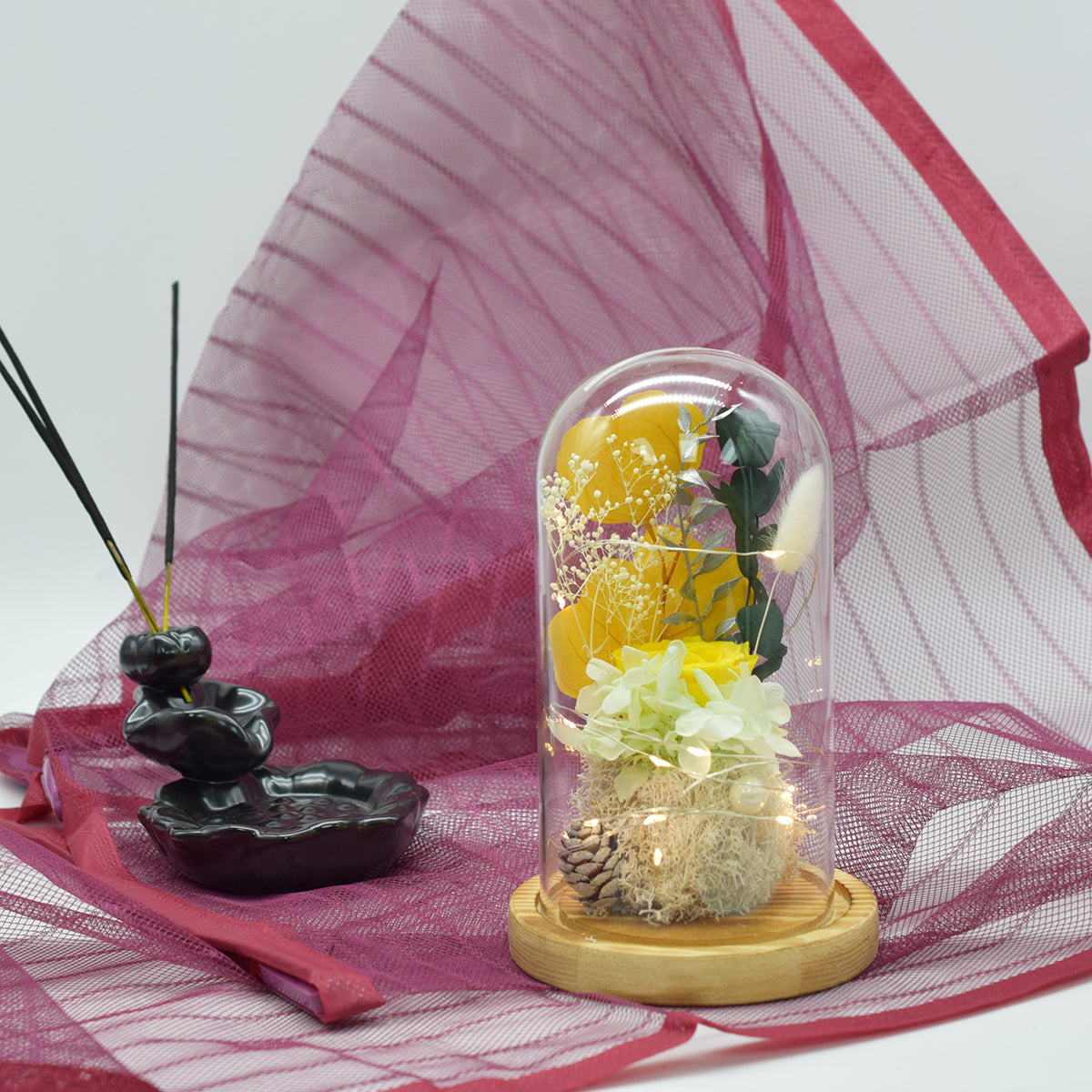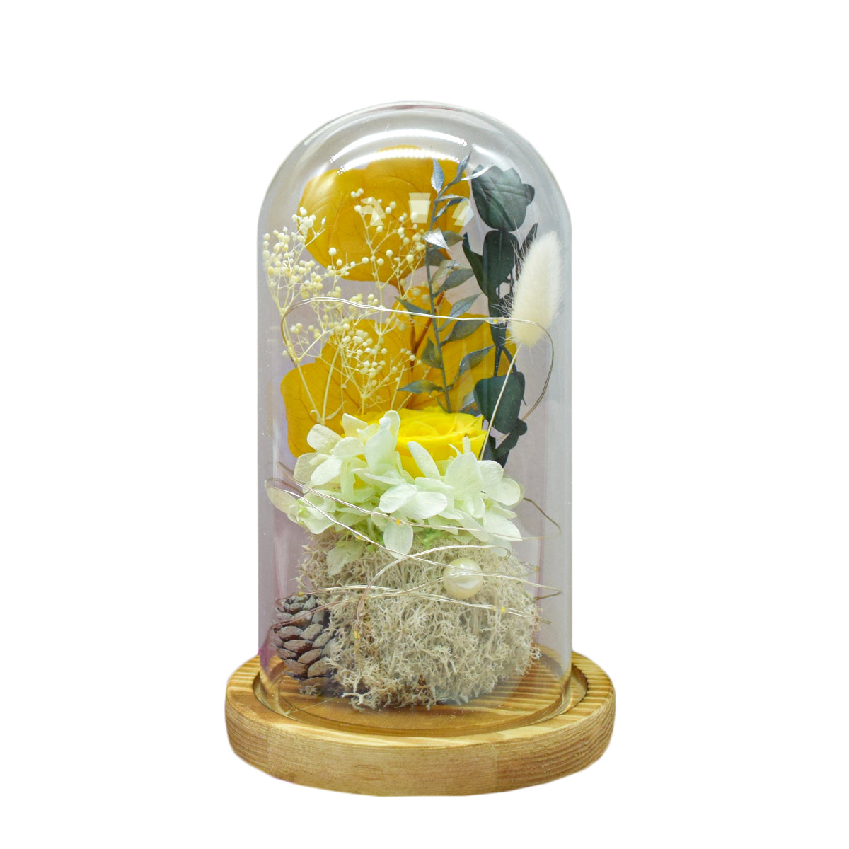 Aranjament floral in cupola de sticla, lumina Led, D4050, Galben