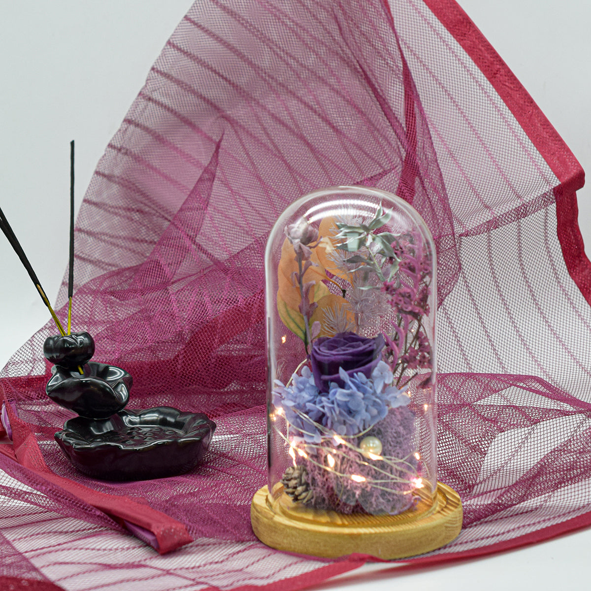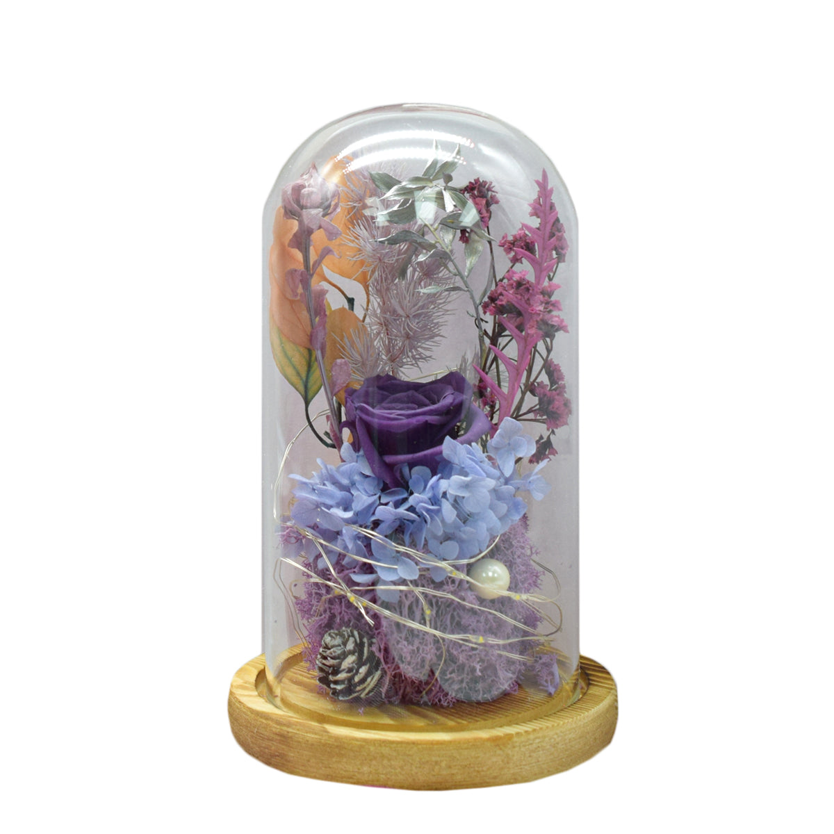 Aranjament floral in cupola de sticla, lumina Led, D4050, Mov