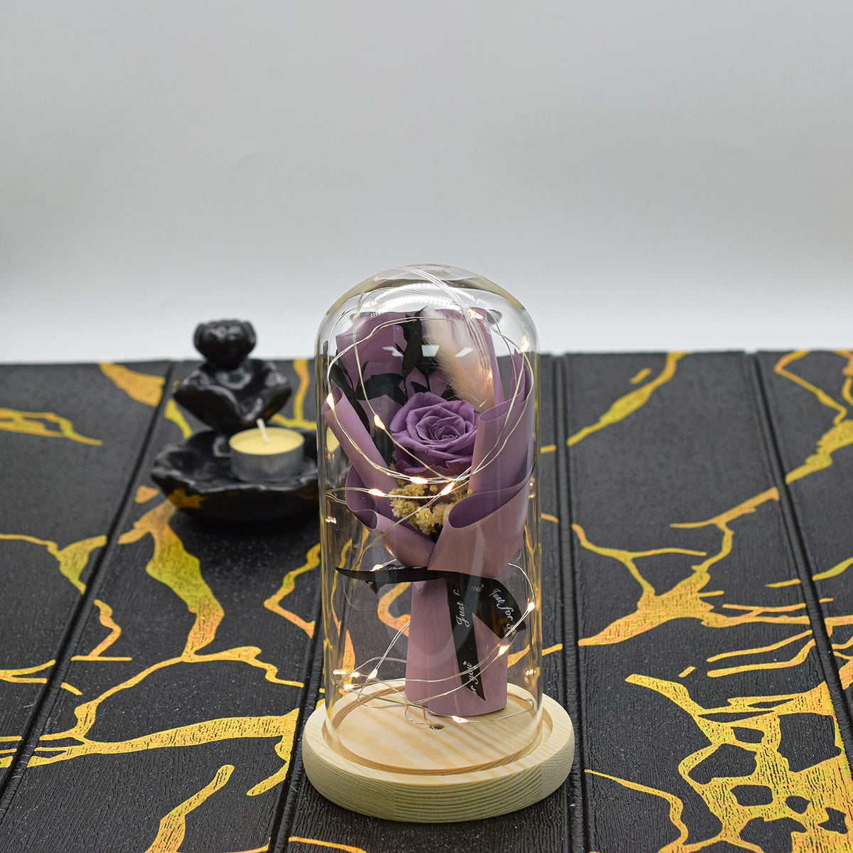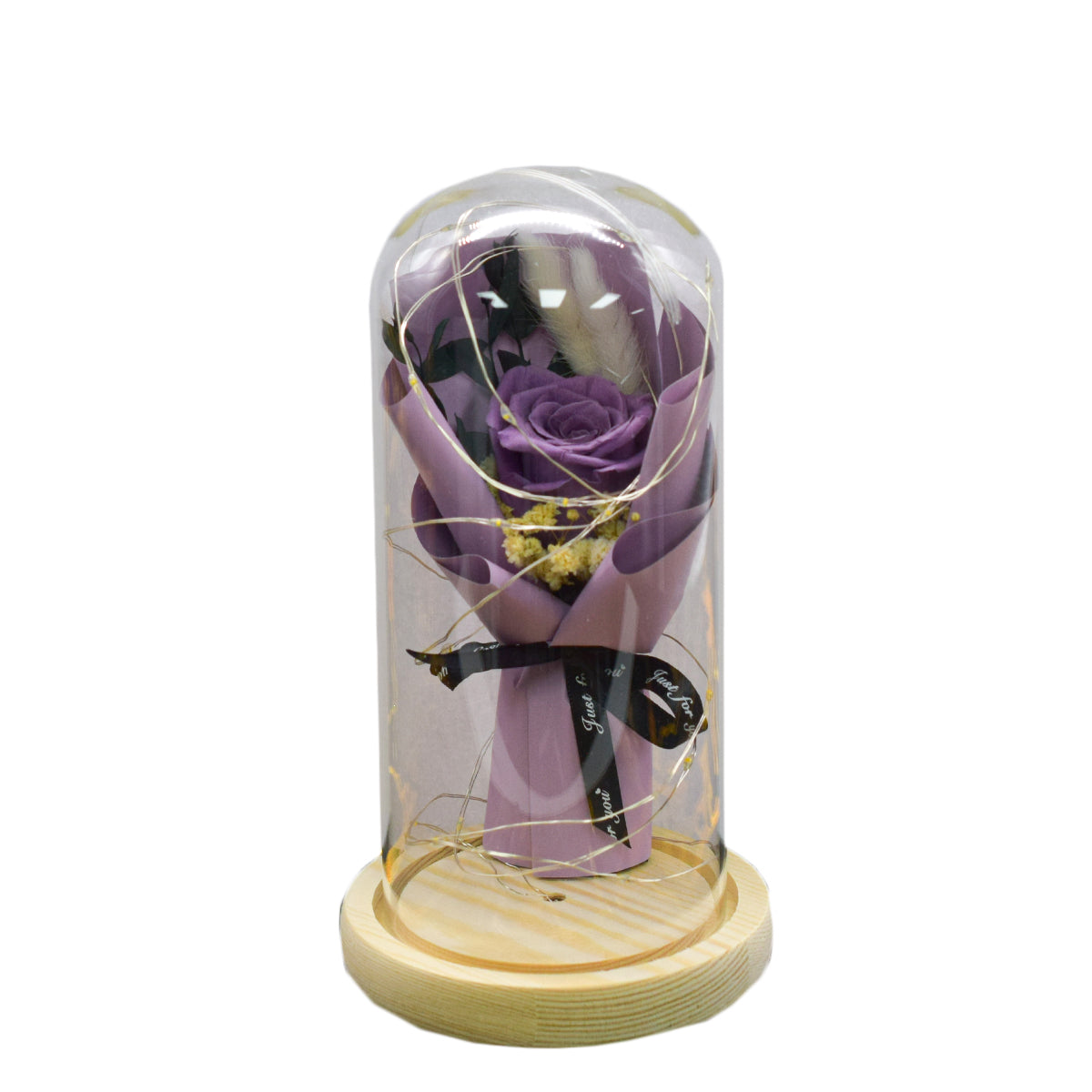 Aranjament floral in cupola de sticla, lumina Led, D4054, Mov