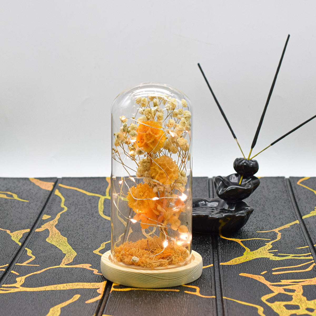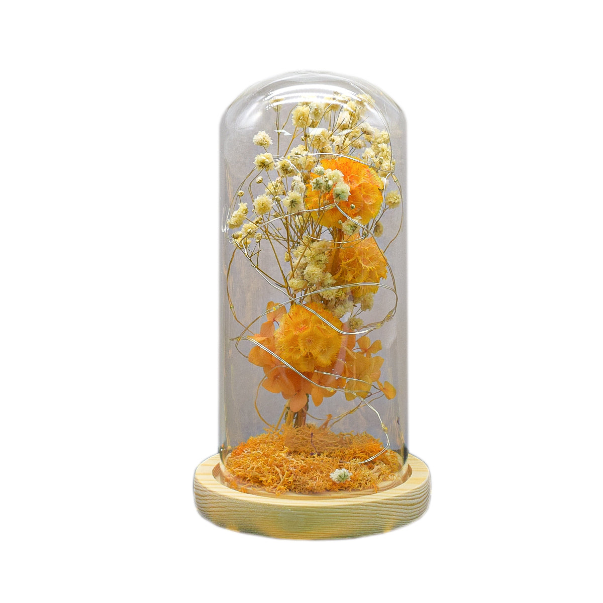 Aranjament floral in cupola de sticla, lumina Led, D4055, Portocaliu