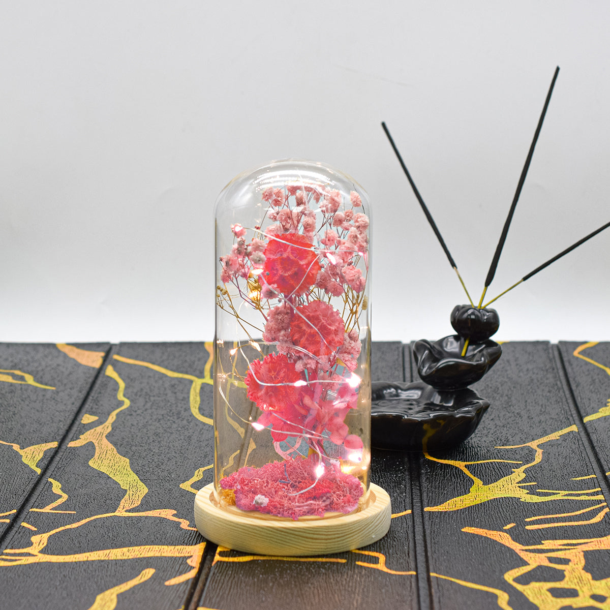 Aranjament floral in cupola de sticla, lumina Led, D4055, Roz