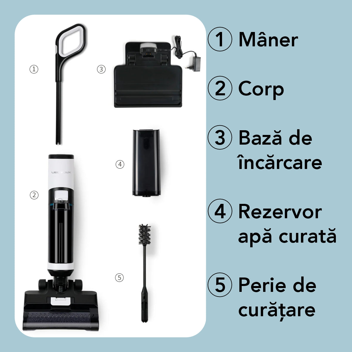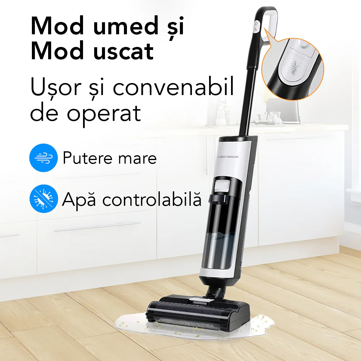 Versatilitate: Se adapteaza la toate tipurile de podele si poate indeplini atat functia de aspirator, cat si de mop.