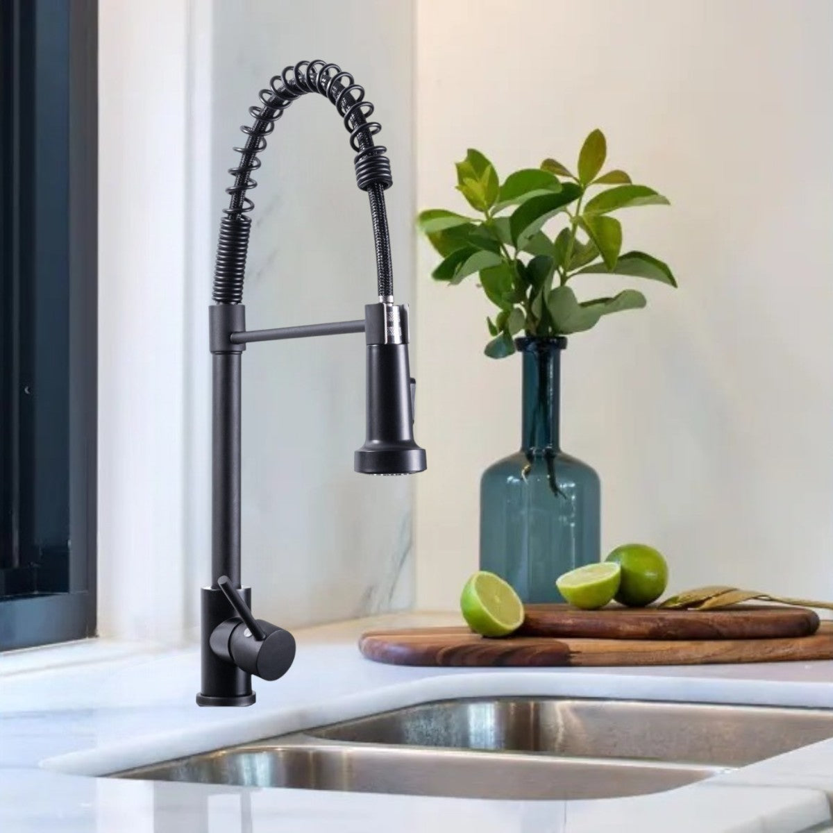 Baterie chiuveta de bucatarie, rotire 360°, 2 moduri de jet ajustabil, Naimeed D6177, Negru