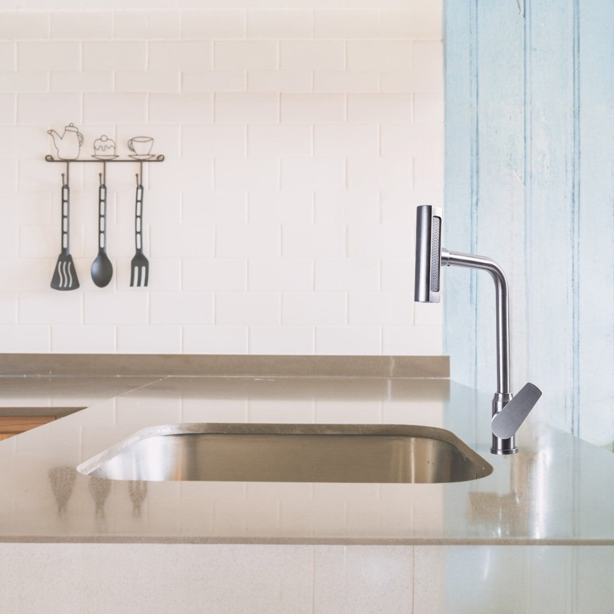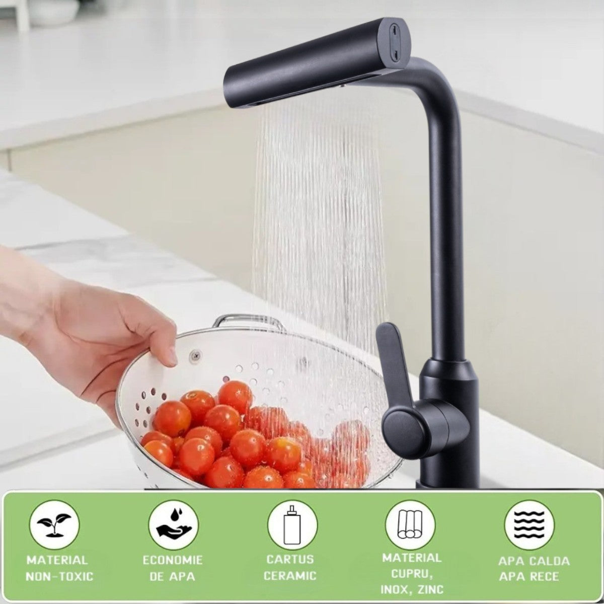 Aceasta baterie moderna pentru chiuveta combina un design elegant cu functionalitate maxima, fiind ideala pentru bucatariile moderne.