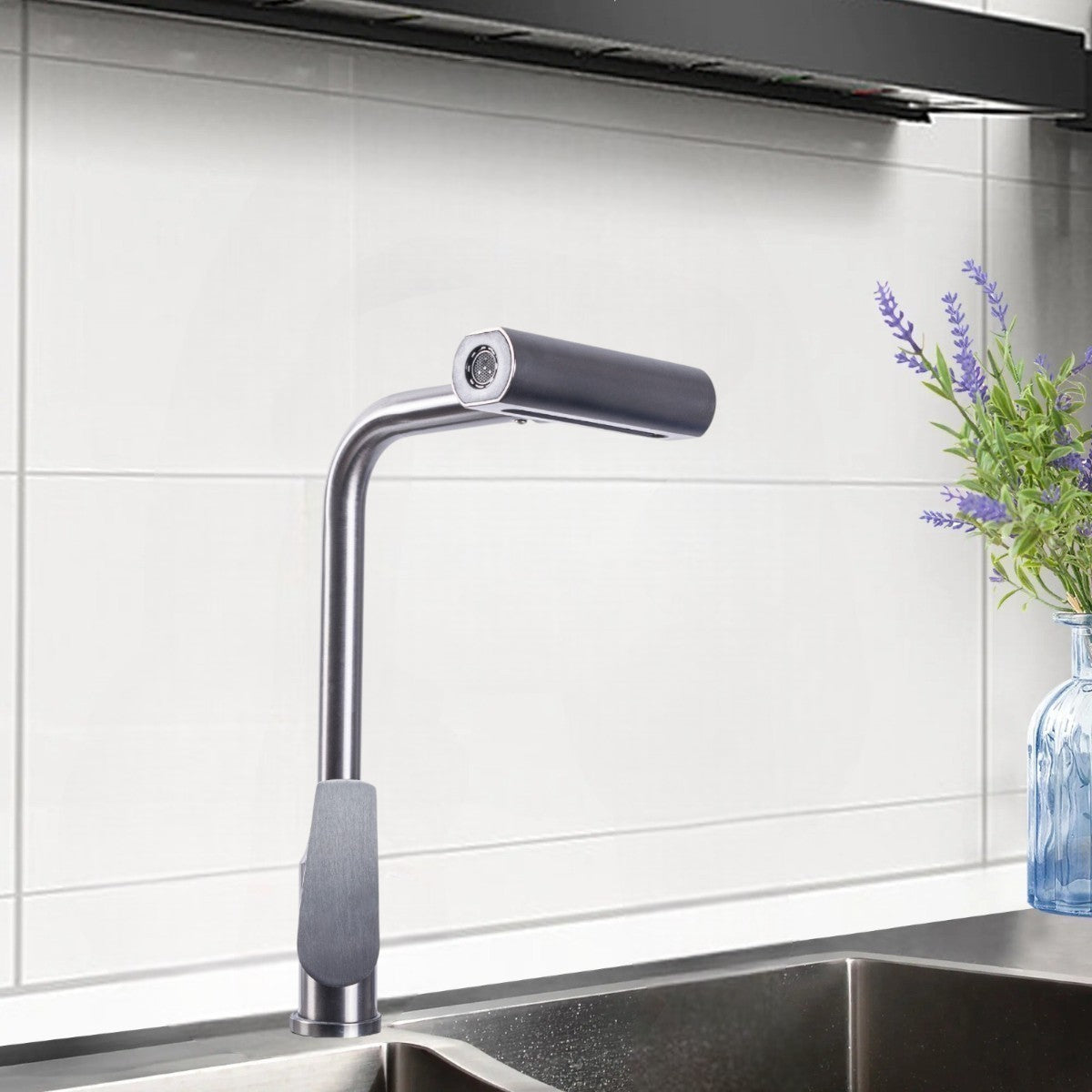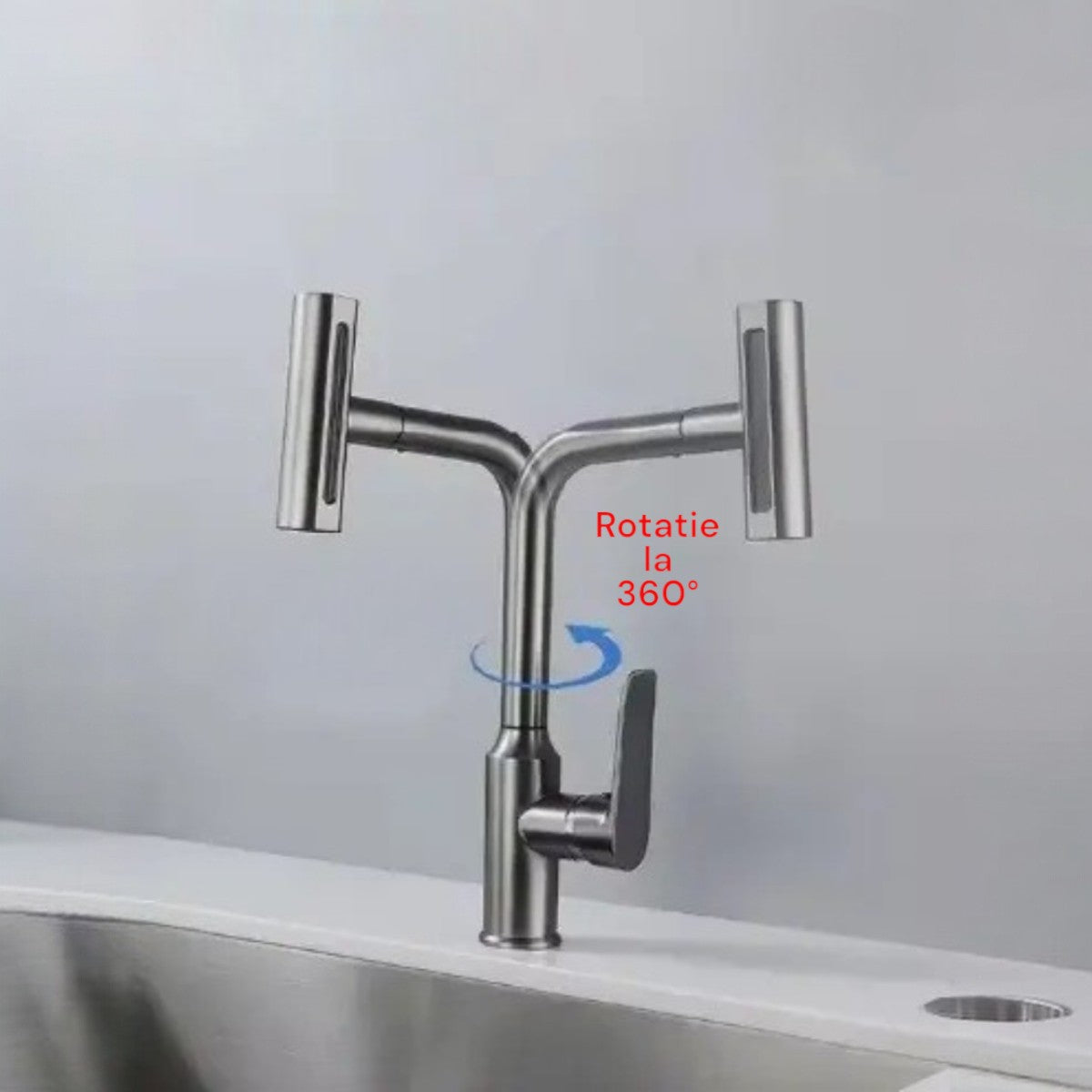 Bateria este proiectata pentru flexibilitate, permitand rotirea completa la 360° atat a corpului principal, cat si a capului de robinet,