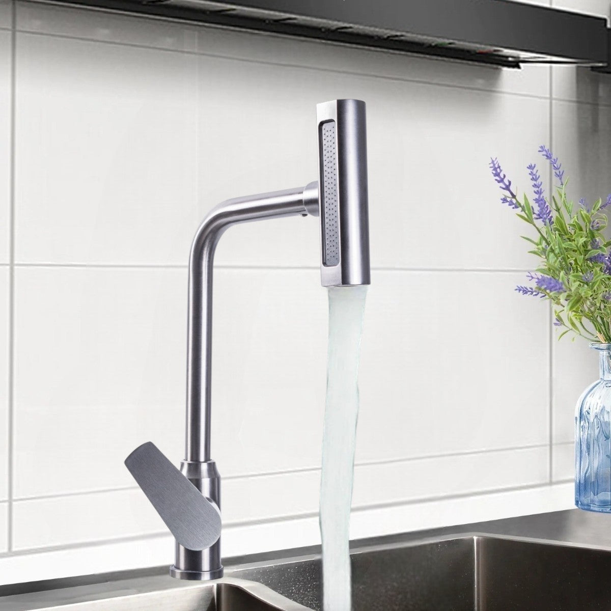Capul de robinet este echipat cu 4 moduri diferite de curgere a apei, adaptandu-se nevoilor tale, de la spalarea delicata a vaselor pana la curatarea intensa.