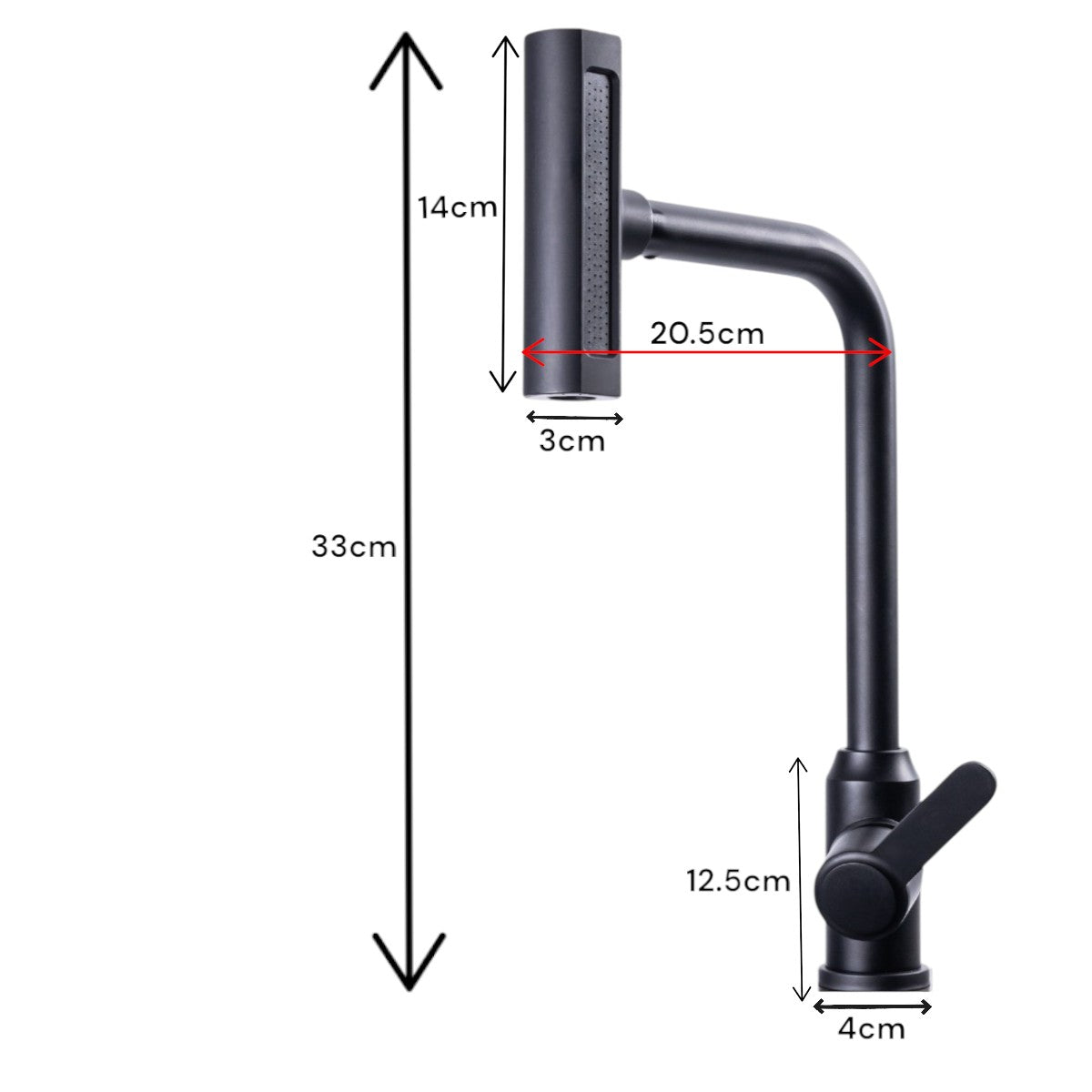 Baterie chiuveta de bucatarie, rotire 360°, multifunctionala, cu design modern, Naimeed D6182, Negru mat