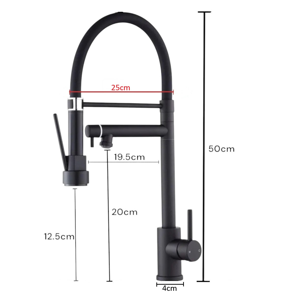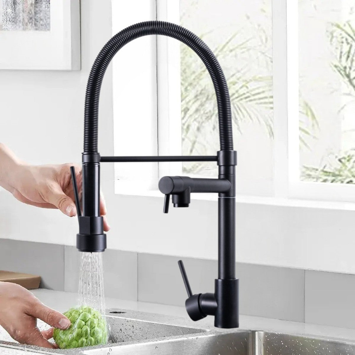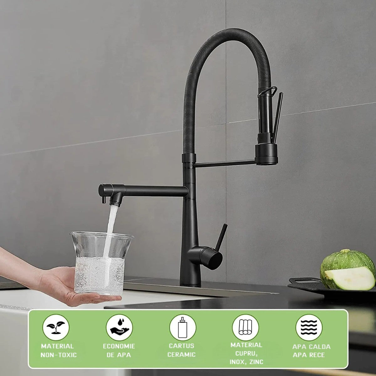 Baterie chiuveta de bucatarie, rotire 360°, multifunctionala, cu design modern si furtun flexibil, Naimeed D6180, Negru