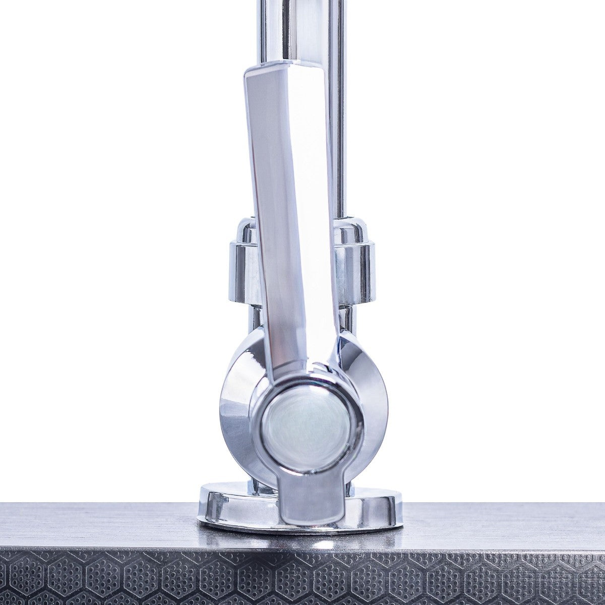 Design modern si functional: Finisajul argintiu stralucitor si tubul arcuit fac acest robinet potrivit atat pentru spatii moderne, cat si clasice.