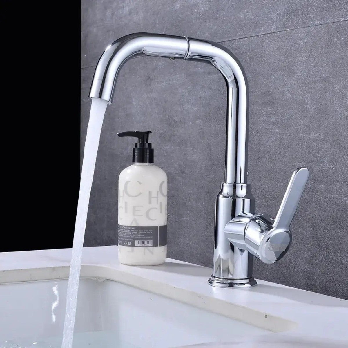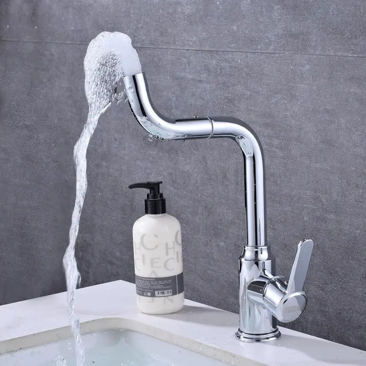 Pipa rotativa: Pipa se poate roti, oferind flexibilitate si acces usor la toate zonele chiuvetei.