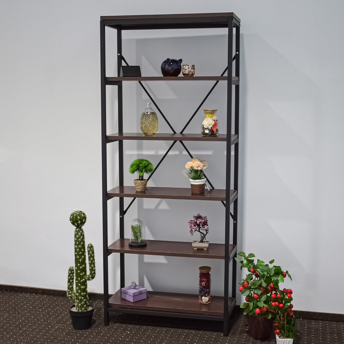 Biblioteca cu 5 polite, Naimeed XF6-80, Negru/Castan inchis
