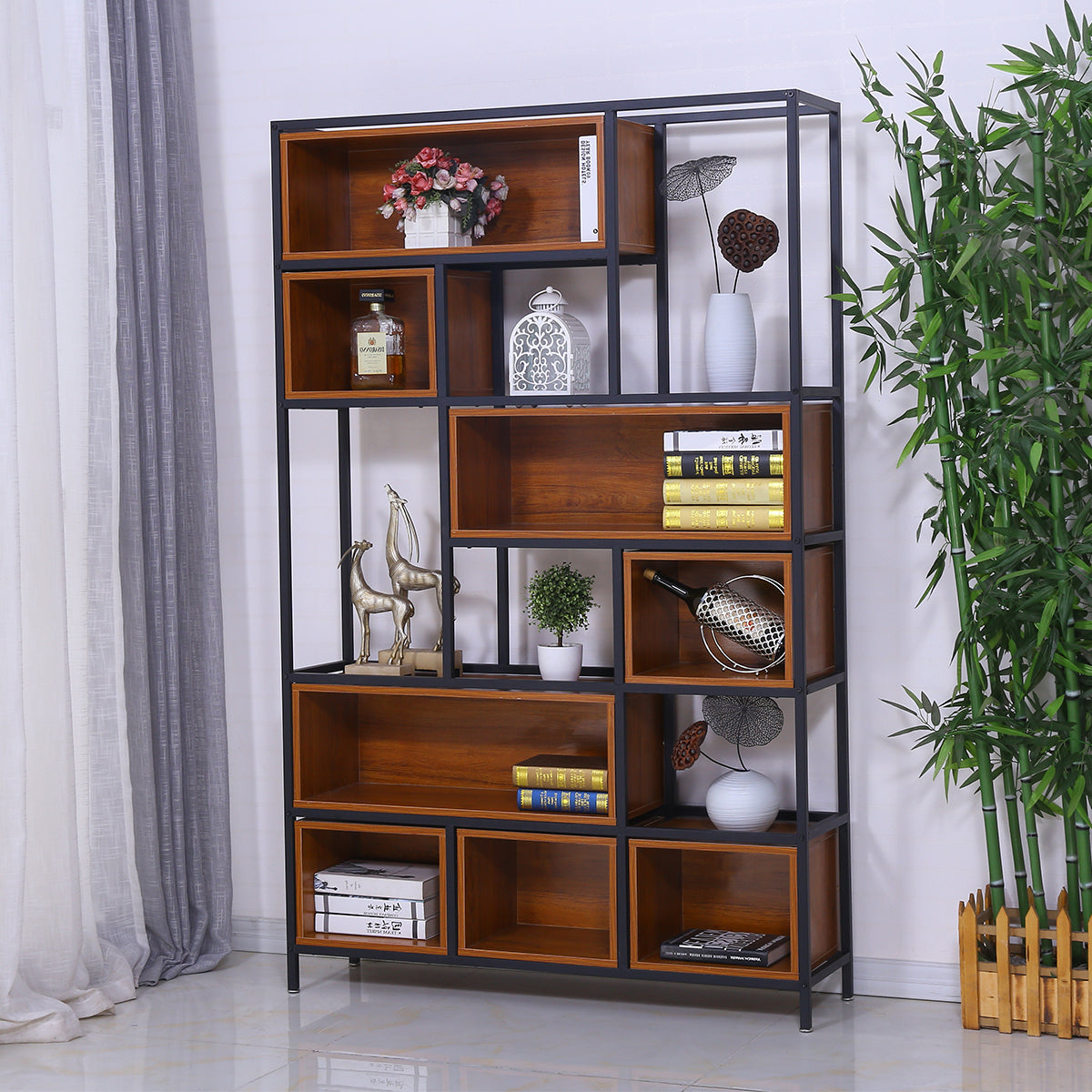 Biblioteca cu 8 compartimente, Naimeed P01-120, Negru/Stejar Rustic