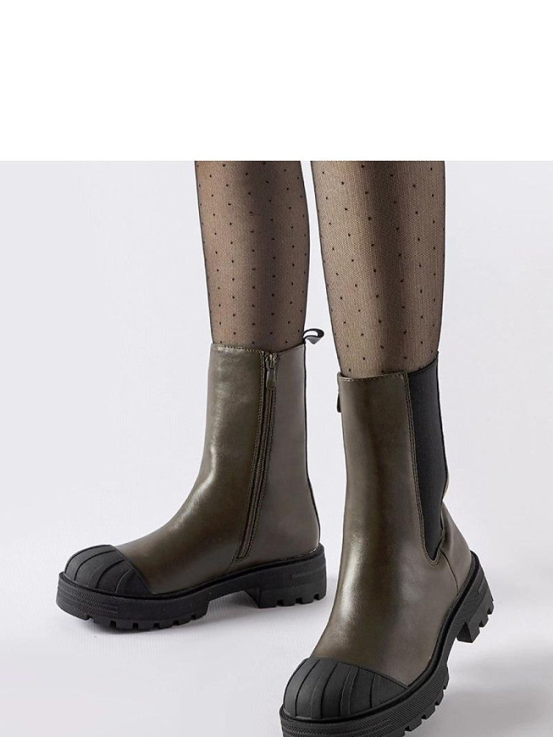 Botinele căptușite cu verde închis Porcigatone sunt o alegere excelentă pentru zilele mai reci. Datorită căptușelii lor călduroase, acestea oferă protecție împotriva frigului și garantează confortul purtării. Fermoarele de pe lateral facilitează încălțarea și descălțarea pantofilor. Modelul de tip trapera este foarte la modă, ideal pentru diferite stilizări - atât casual, cât și elegante. Vârful rotund le conferă un caracter inovator. Disponibile în diferite dimensiuni, pentru a asigura o potrivire perfectă pentru fiecare femeie. Căptușeala călduroasă menține piciorul cald pe tot parcursul zilei, asigurând confort maxim în timpul plimbărilor lungi. Traperele căptușite cu verde închis Porcigatone sunt un accesoriu indispensabil pentru garderoba de iarnă, protejând picioarele împotriva frigului și evidențiind în același timp stilul modern. Materialul exterior este piele ecologică, talpa fiind confecționată din cauciuc de culoare neagră, cu închidere cu fermoar. Pantofi ideali pentru toamnă și iarnă.