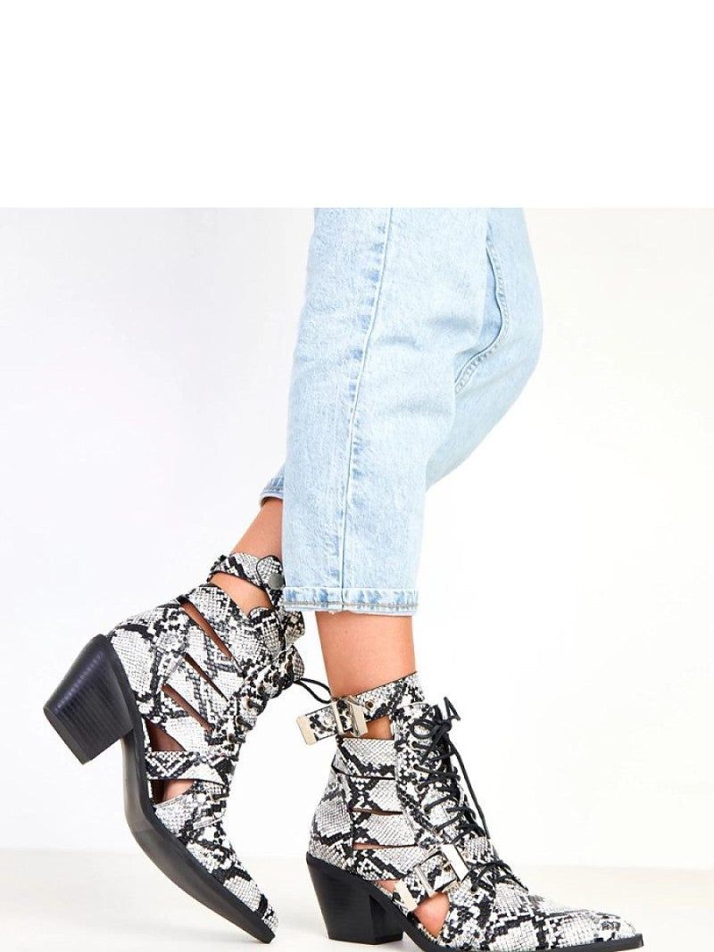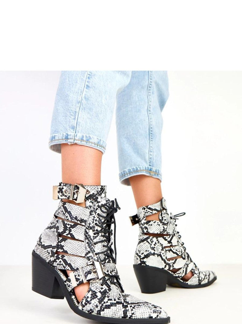 Botine elegante pentru femei realizate din piele ecologică de înaltă calitate, care se disting prin decupaje decorative, șireturi și catarame spectaculoase care le conferă un caracter unic. Vârful ascuțit subțire și tocul de 7,5 centimetri tip stiletto subțiază optic silueta, asigurând în același timp confort și stabilitate. Gulerul de 14 cm subliniază frumos glezna, iar interiorul căptușit cu material textil garantează confortul la purtare. Lipsa căptușelii îi conferă modelului o versatilitate excelentă în sezonul de tranzitie. Aceste botine au un design modern și elegant, care adaugă caracter atât ținutelor de zi cu zi, cât și celor mai speciale.