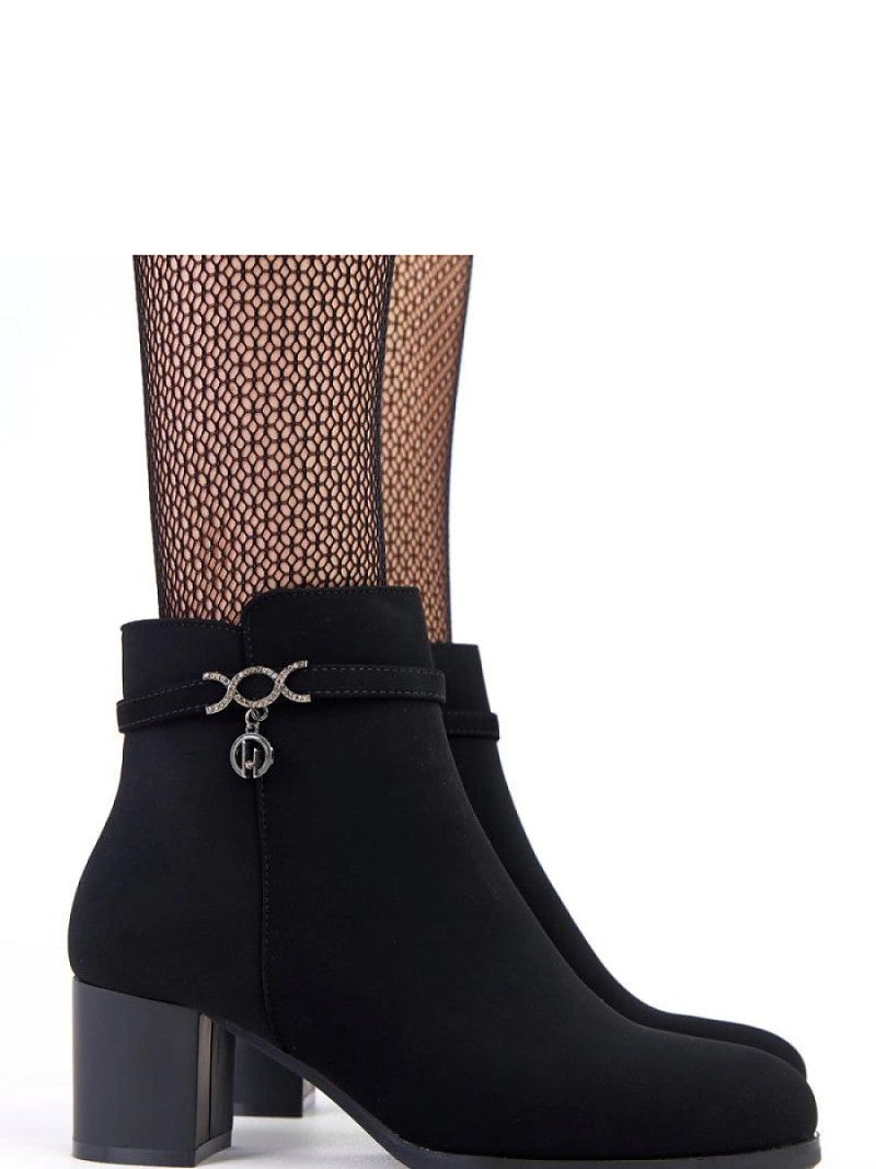 Botine elegante pentru femei, realizate din piele ecologică mată, sunt o combinație de eleganță și confort. Croiala clasică a fost îmbogățită cu o curea decorativă cu aplicație strălucitoare de zirconiu, care adaugă întregii ținute un caracter subtil și feminin. Modelul are vârful migdalat, care subțiază optic piciorul, și un toc stabil de tip bloc de 5,5 cm înălțime, perfect pentru zi de zi și pentru ocazii speciale. Tija înaltă protejează împotriva frigului, iar căptușeala moale și tălpicul din material garantează confortul în sezonul toamnă-iarnă. Închiderea practică cu fermoar facilitează încălțarea rapidă și descălțarea încălțămintei. Aceste botine versatile se vor potrivi perfect atât în ținute elegante, cât și casual.